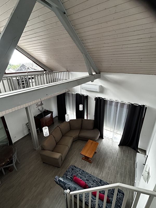 Loft spacieux en duplex, très lumineux, composé d'une pièce à vivre de 70 m2 + mezzanine pour les couchages. Idéal pour un couple ou une famille avec enfants.