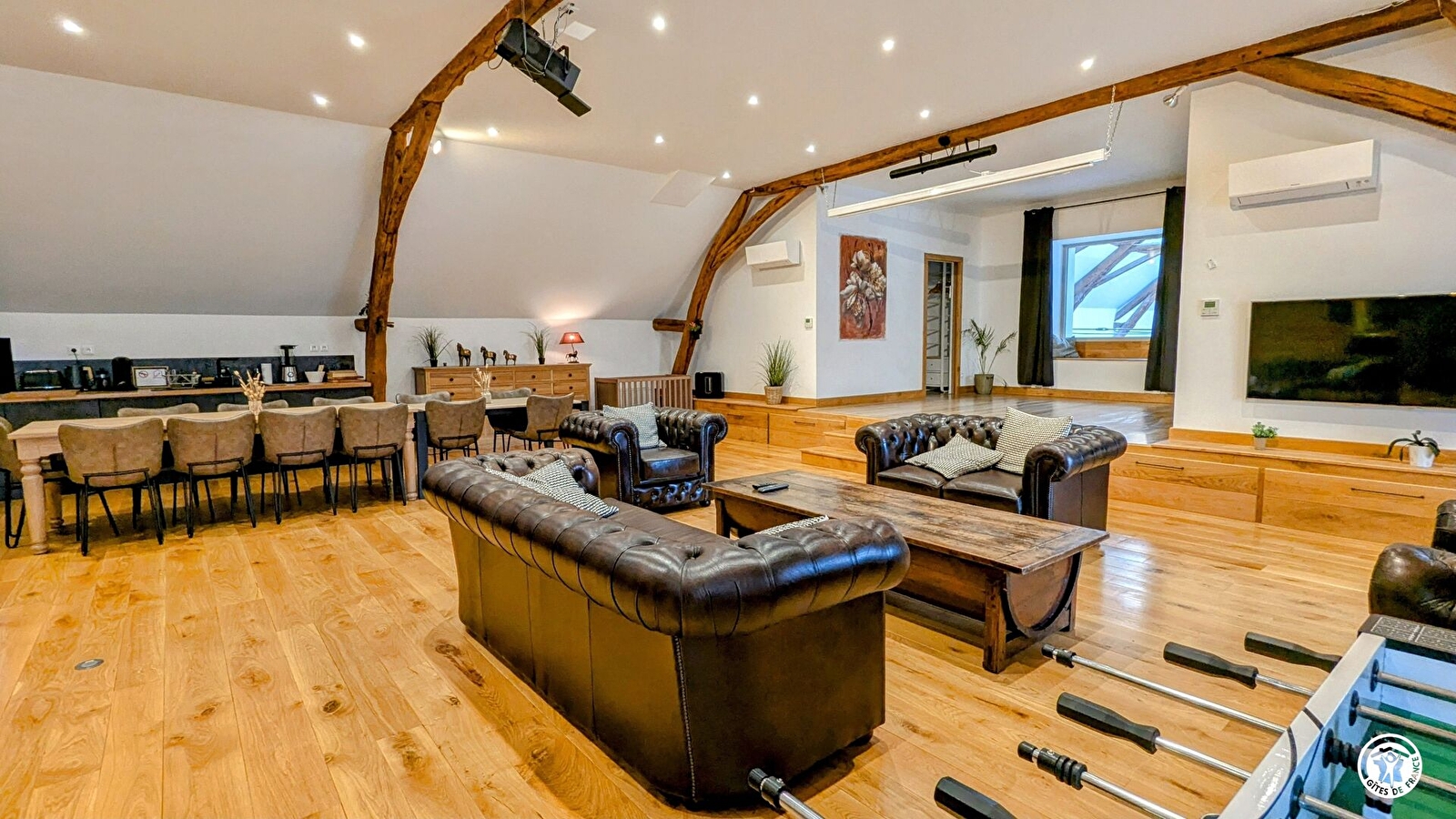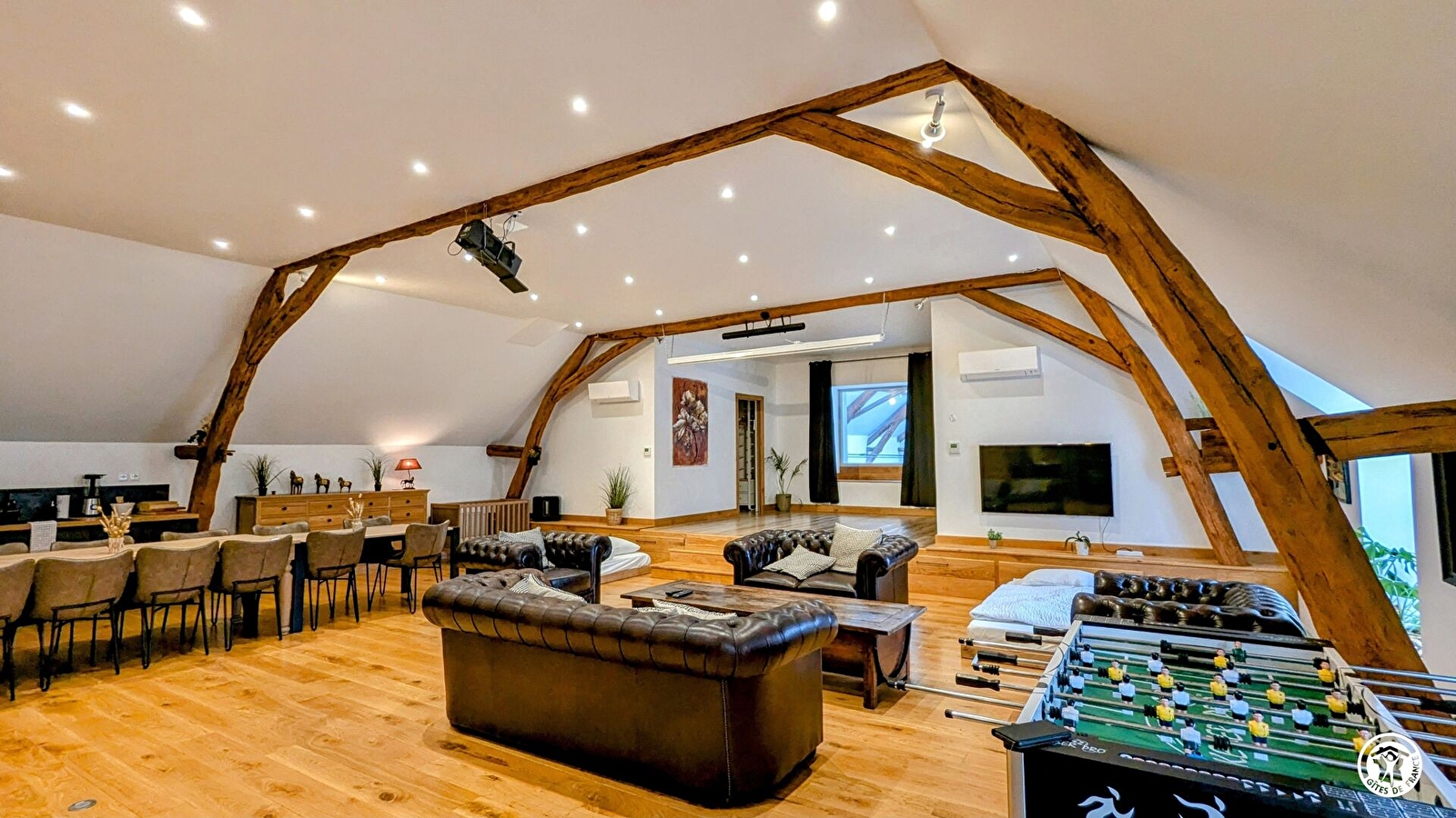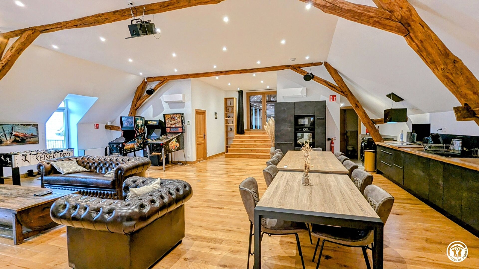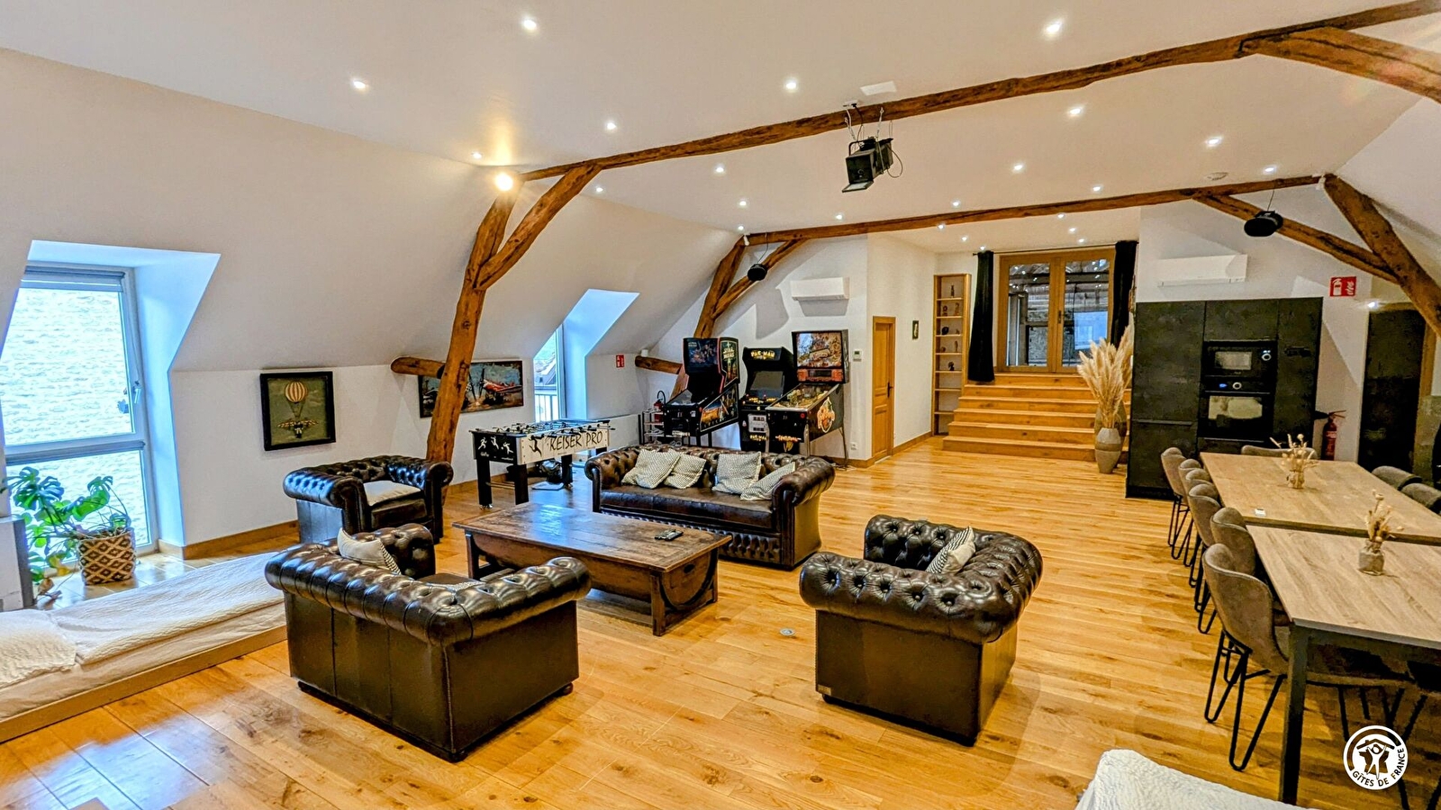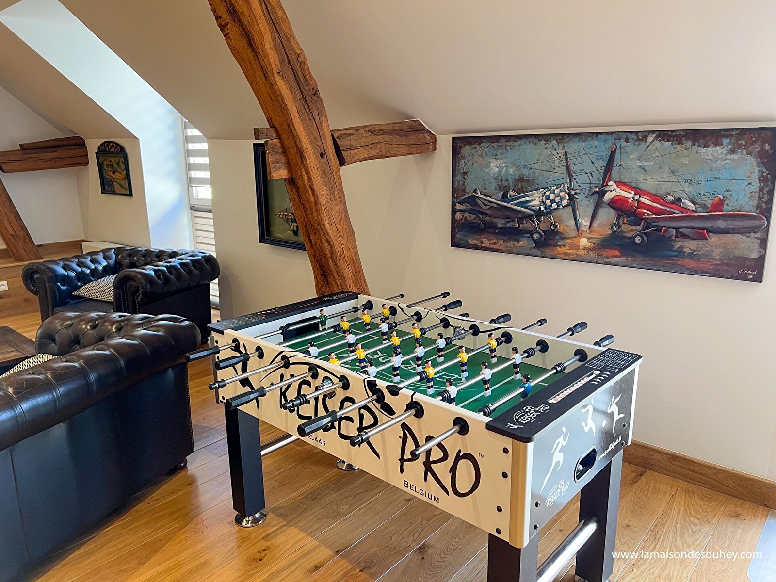 A 10 minutes de la Cité médiévale de Semur-en-Auxois, La Maison de Souhey est une ferme entièrement rénovée sur une propriété de 16 hectares, au calme. Accès au loft par un escalier extérieur. Grande pièce de vie ouverte sur salon/salle à manger et cuisine moderne entièrement équipée. Espace buanderie. Salle de bain avec douche italienne et baignoire. WC indépendant. 2 chambres avec 1 lit de 180X200 cm chacune. 2 lits "tiroirs" dans la pièce de vie (idéal pour enfants) avec matelas de très bonne qualité. 2 lits d'appoint sur demande. Climatisation, grand écran, home cinéma, bornes d'arcade, baby-foot... Espace couvert avec quelques appareils de fitness. Matériel bébé sur demande. Mise à disposition d'un sèche-linge sur demande. Grande piscine (14,5X4,5 m) couverte chauffée (de mai à Octobre selon conditions météo), à partager avec les clients des chambres d'hôtes situées sur le Domaine. Sauna infra-rouge (25 €/séance de 30 minutes, à régler sur place). Grand terrain de 16 hectares : centre équestre, promenade à cheval et promenade en attelage ; découverte de la région en ULM haut de gamme, avion ou autogyre ; activités photos et vidéos ; tables d’hôtes (activités à réserver et régler sur place). parking privé. Abri couvert et recharges pour vélos.
