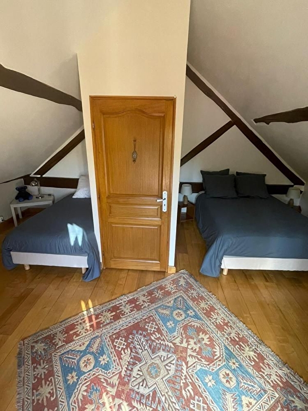 Une chambre familiale pour une même famille avec sanitaires privatifs = la chambre "vue jardin et piscine" est composée d'un lit double 140 et d'un lit simple de 100cm + la chambre "vue campagne" composée d'un lit double 160 (possibilité de le scinder en 2 lits de 80) et deux lits individuels de 80 et d'une méridienne pouvant accueillir un enfant. Lit bébé sur demande.