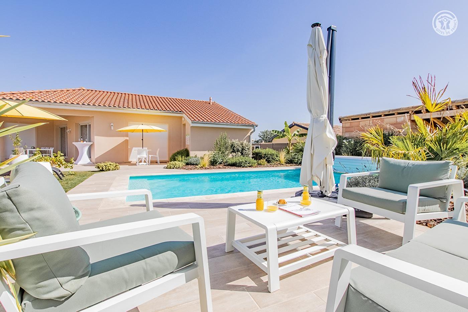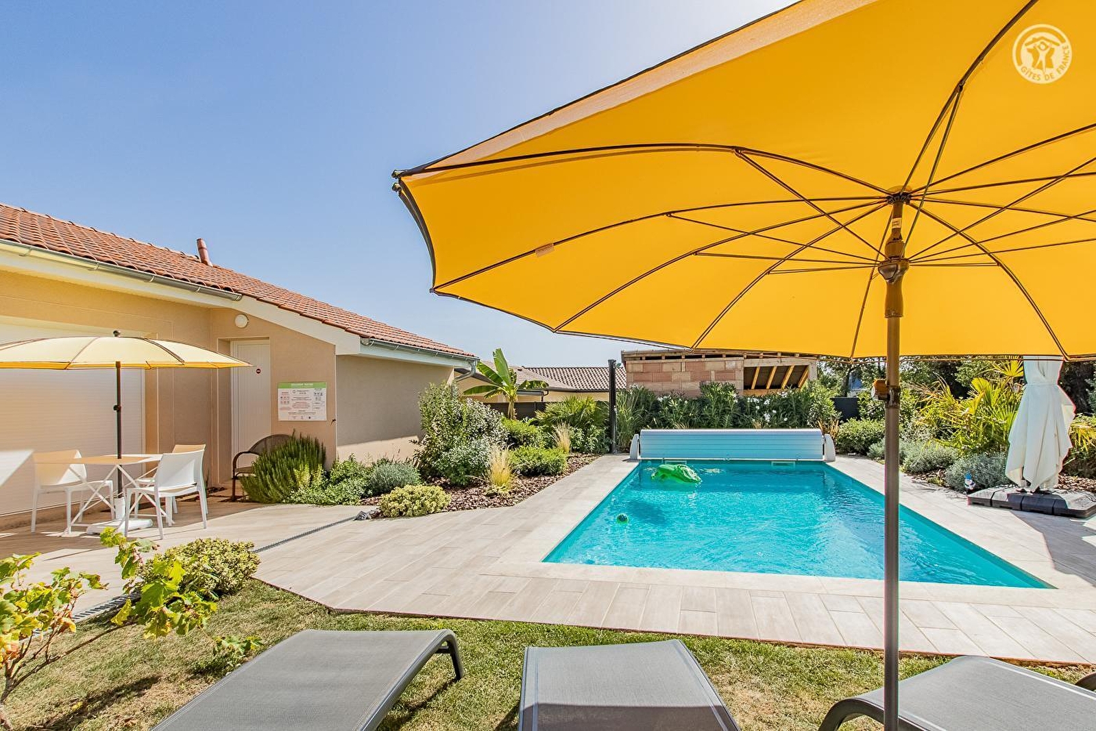Œnophile passionnée qui saura vous conseiller, "caviste à domicile" de profession (dégustations-vente privée possible sur place) titulaire d'une licence VTC (prestation de véhiculage possible sur réservation, potentiellement gratuite en court-trajet), Yasmina & son mari Guillaume vous accueillent dans une charmante maison contemporaine blottie en pleine douce campagne mâconnaise préservée, au cœur même du vignoble de l'AOC Pouilly Vinzelles, au sein d'un paisible petit lotissement résidentiel pavillonnaire. Magnifique cadre paysagé alentour, niché au creux d'un agréable environnement viticole vallonné, jouxtant le centre du pittoresque bourg de Vinzelles, pétri de charme & parfaitement sauvegardé, abritant une belle église romane classée du XIIème siècle. Spacieux gîte de très bon confort. Vaste salle d'eau. Chaleureux cachet contemporain aux lignes modernes & épurées. Élégante sobriété. Ambiance zen & douce, très reposante. Cosy & ultra douillet. Beaucoup de charme & caractère. Large terrasse privative nichée en lisière immédiate du vignoble, dotée d'une belle vue dégagée sur les vignes & la campagne environnante. Agréable propriété close soignée proposant une intimiste belle piscine chauffée (7x3.5m), agrémentée d'une vaste "plage terrasse" végétalisée, ainsi qu'un parfait terrain de pétanque.