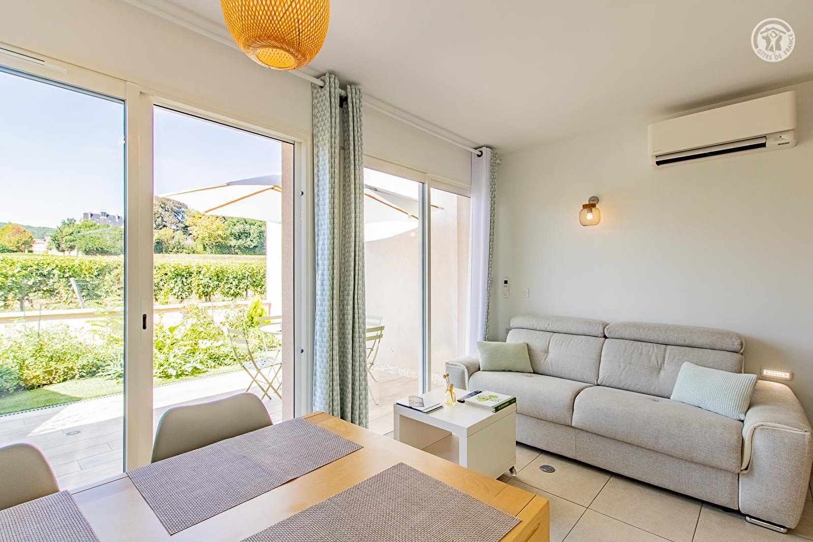Composition : Gîte de plain-pied aménagé dans la maison des propriétaires comprenant leur appartement (mitoyenneté en totale indépendance). Wifi. Chauffage PAC. Climatisation. Gîte en rdc : séjour-cuisine-salon, 1 chambre (1 lit 2 personnes de 160x200cm), salle d'eau (douche/Wc). Terrasse privative. Parking privé (borne de recharge électrique payante à disposition). Terrain clos en commun avec terrain de pétanque et piscine chauffée (7x3.5m / accessible aux hôtes en mode totalement privé de 10h à 19h, de mi-avril à mi-septembre). Local vélos. Toutes commodités dont supermarché à 3 km. Gîte labellisé "Accueil Vélo" & "Vignobles & Découvertes".