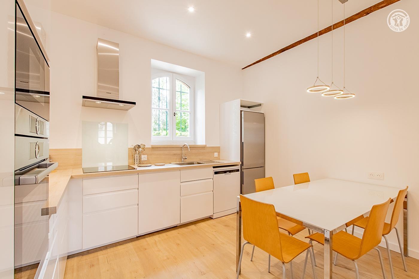 Martin, argentin de naissance & bourguignon d'adoption (professeur de musique parlant 5 langues !) & Isabelle vous ouvrent les portes d'une ravissante demeure "bourgeoise" de caractère du XIXe chargée d'histoire (ancienne maison d'Armand Calliat, célèbre artiste, archéologue & historien, "érudit de Bourgogne" renommé) intégralement restaurée avec style & goût, sise en bordure de ruelle à deux pas des premiers vignobles & d'un parc (aire de jeux) en plein cœur du bourg viticole & commerçant de Givry. Ancien village fortifié dont subsistent les vestiges des remparts, célèbre pour son AOC (fleuron des Côtes chalonnaises) & son très riche patrimoine classé (nombreuses églises, édifice roman du XIIe, Porte de l'Horloge, hall ronde, Cellier aux Moines, lavoirs, demeures de caractère…), cette charmante cité blottie au creux d'un magnifique vallon préservé de coteaux de vignobles & prairies, cerclé de vastes forêts domaniales, dispose de l'intégralité des services & commerces et de nombreuses activités de loisirs dont le Parc "Acrogivry" (le plus grand parc accrobranche de Bourgogne, l'un des plus grand parc Aventure de France) & profite d'un écrin champêtre et naturel environnant de toute beauté, aux sublimes paysages. Spacieux gîte de grand confort. Beau volume de la pièce de vie. Cachet contemporain très soigné, cossu & raffiné. Ambiance zen & douce à l'esprit "scandinave". Beaucoup de charme. Cosy & ultra cocooning. Équipement très complet de grande qualité.