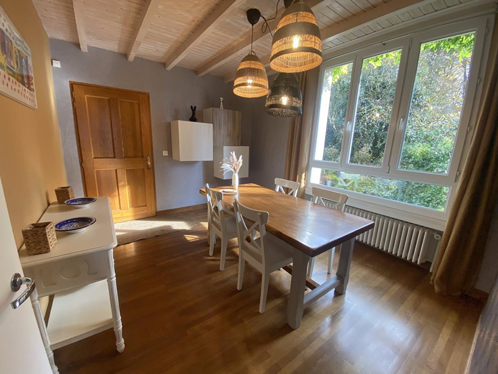 Idéalement situé entre le Haut Jura et la Région des Lacs et des Cascades, non loin des principaux sites touristiques du département, logement indépendant et spacieux, situé à l'étage. Séjour, salon, coin-cuisine avec plaques vitro-céramique, ch1: 1 lit 160x200cm, salle d'eau privée, ch2: 1 lit 160X190cm, salle d'eau privée, wc indépendants, terrain attenant clos de 1,5ha, cour, salon de jardin, barbecue. Fourneau à granulés en sus.