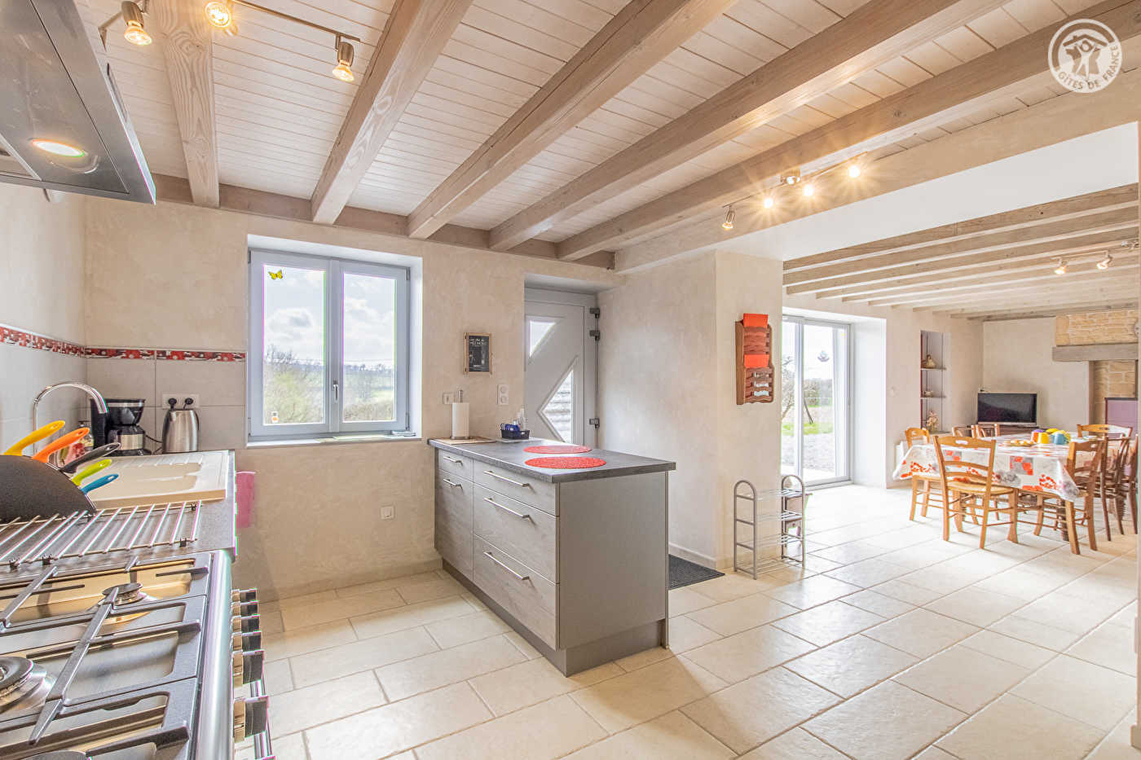 Delphine vous accueille au sein d'une authentique ferme morvandelle traditionnelle du début 19ème siècle intégralement restaurée et réhabilitée en confortable villégiature, pétrie d'histoire familiale & personnelle (« maison de famille » depuis toujours, ancienne demeure de son arrière-grand-mère). Environnement calme, au sein d'un mini hameau rural familial blotti en pleine campagne vallonnée au creux de la verdoyante vallée de l'Arroux (bucolique rivière poissonneuse qui coule à deux pas), en lisière immédiate de bocage accueillant les célèbres paisibles vaches charolaises en saison en guise de voisines ultra privilégiées. Apaisant cadre champêtre & naturel préservé jouxtant plusieurs grands étangs et de vastes massifs forestiers sauvages à découvrir lors de promenades à pied ou en VTT. A 8.5 km du centre du centre du petit bourg typique d'Uxeau niché au pied du Mont Dardon culminant à 506 mètres d'altitude, exceptionnel belvédère & ancien oppidum gaulois offrant une spectaculaire vue panoramique sur les hauts lieux de la Bourgogne du sud comme les montagnes du Mont Beuvray, Uchon ou le Mont Saint-Vincent et jusqu'au Mont Blanc par temps clair (avec table d'orientation dédiée). Spacieux gîte de bon confort. Grande pièce de vie. Chaleureux cachet campagnard aux accents contemporains. Ambiance zen et douce. Équipement complet de qualité. Large terrasse au sud (abritée & ombragée sous pergola) ouverte sur un agréable jardin clos végétalisé & fleuri, dominant les pâtures voisines. Belle vue dégagée sur la douce campagne environnante.