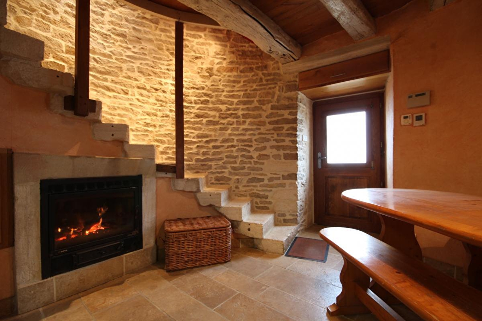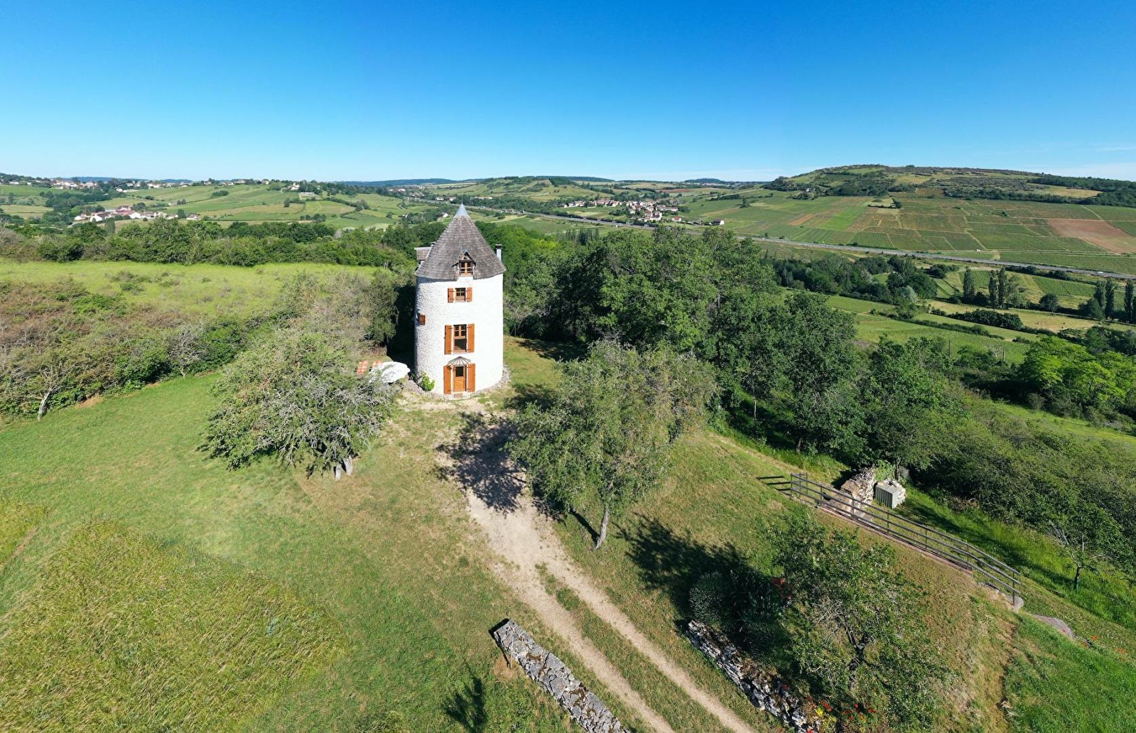 Yvane & Stéphane vous ouvrent les portes d'un très rare authentique ancien moulin traditionnel de caractère édifié en 1810 (qui produisit jadis de la farine), pétri d'histoire & très soigneusement réhabilité, immergé au creux d'un bucolique cirque "sauvage" de vignobles & prairies, sur une douce colline, au sein d'un hameau rural "dispersé" dominant en vigie & "belvédère" panoramique le charmant petit bourg typique de Saint-Désert. En pleine douce campagne viticole vallonnée des Côtes Chalonnaises (protégée en ZNIEFF & Zones Natura 2000 pour ses richesses floristiques & faunistiques), apaisant écrin paysagé mixant bocages, coteaux de vignes & forêts sauvages (dont la proche forêt domaniale de Givry, littéral "poumon vert" du territoire). Gîte de très bon confort riche d'une insolite architecture contemporaine "d'avant-garde" dont une atypique salle d'eau aux allures de "cabine de bateau" ou sa chambre "tipi" boisée lovée sous les toits dans l'esprit d'un "cocon romantique". Très chaleureux cachet campagnard sublimé par l'âme dépaysante des lieux (conservation des élégants linteaux & murs en pierres avec ses niches, poutres, superbe escalier en pierre…d'époque). Énormément de charme & caractère. Savoureux dialogue entre passé & présent dans une ambiance cosy & douillette. Agréable jardin engazonné de 1500m² paré d'un verger fruitier (cerisier, mirabelliers, pruniers, pêcher, cognassier…), ouvert sur les prés sur une vaste propriété en large partie naturelle de 6000m², offrant une sublime vue dégagée à 360° jusqu'au Mont-Blanc par temps clair !