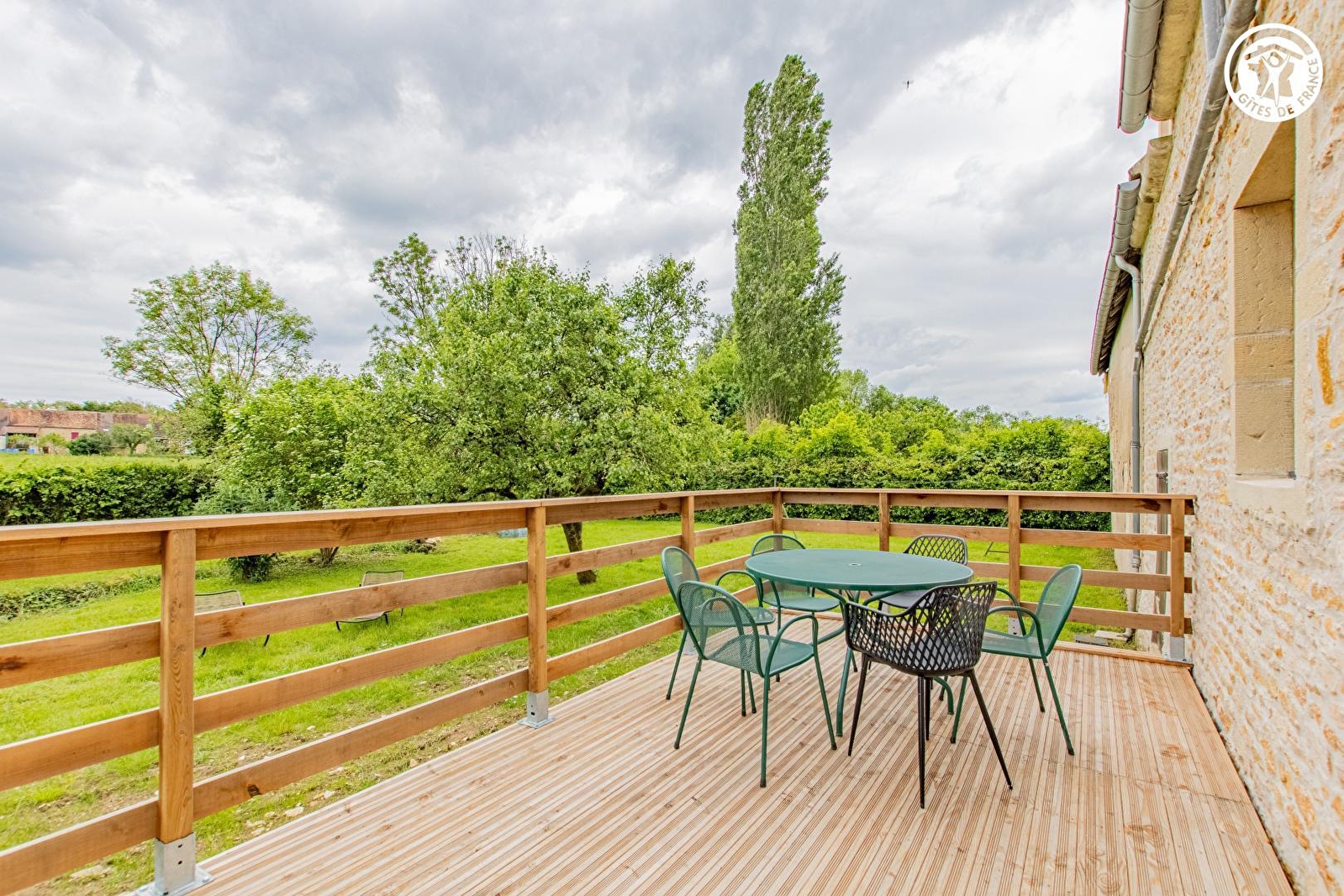 Viticulteurs & éleveurs bovin en race "Herford" (parquées "sur place"), Fanny & Damien vous accueillent au sein d’une charmante authentique demeure bourguignonne traditionnelle du XVIIIe soigneusement réhabilitée, sise sur leur petite exploitation familiale en "agriculture biologique" (abritant poules & canards) au creux d’un site chargé d’histoire (ancien moulin à eau liée à la production de chanvre). Apaisant cadre champêtre préservé, blotti en lisière de forêt & prairies à deux pas des vignobles, aux confins d’un paisible hameau rural, au pied du Mont Péjus (douce colline protégée en "Zone Natura 2000" pour ses remarquables écosystèmes), non loin du cœur piéton de la pittoresque cité médiévale & commerçante de Saint-Gengoux-le-National. Magnifique écrin vallonné alentour, mixant pleine nature, agriculture & viticulture, en partie protégé en ZNIEFF pour ses richesses floristiques & faunistiques. Spacieux gîte de bon confort. Chaleureux cachet campagnard mixant traditions & modernité, sublimé par l’âme douce & dépaysante d’une ancienne demeure rurale typique (poutres, mur en pierres, escalier & sa rambarde en fer forgé, parquets… d’origine). Large terrasse surélevée dominant un agréable jardin de 400m², arboré, végétalisé, & naturellement fleuri, traversé par un bucolique petit ruisseau ("déversoir" lié à l’insolite ancienne écluse du moulin, nichée à deux pas). Belle vue dégagée sur la bucolique campagne environnante avec le bourg s’affichant en toile de fond.