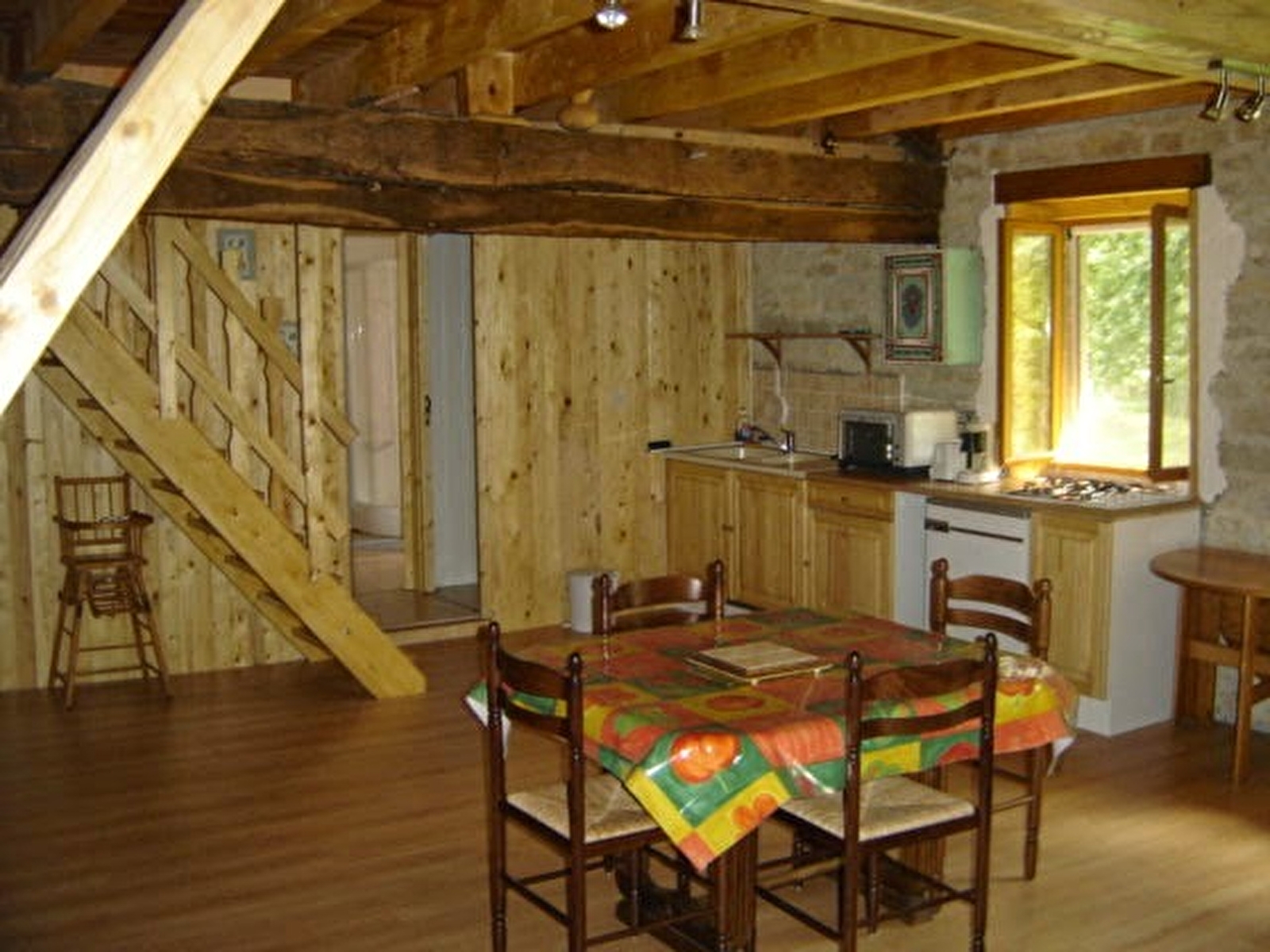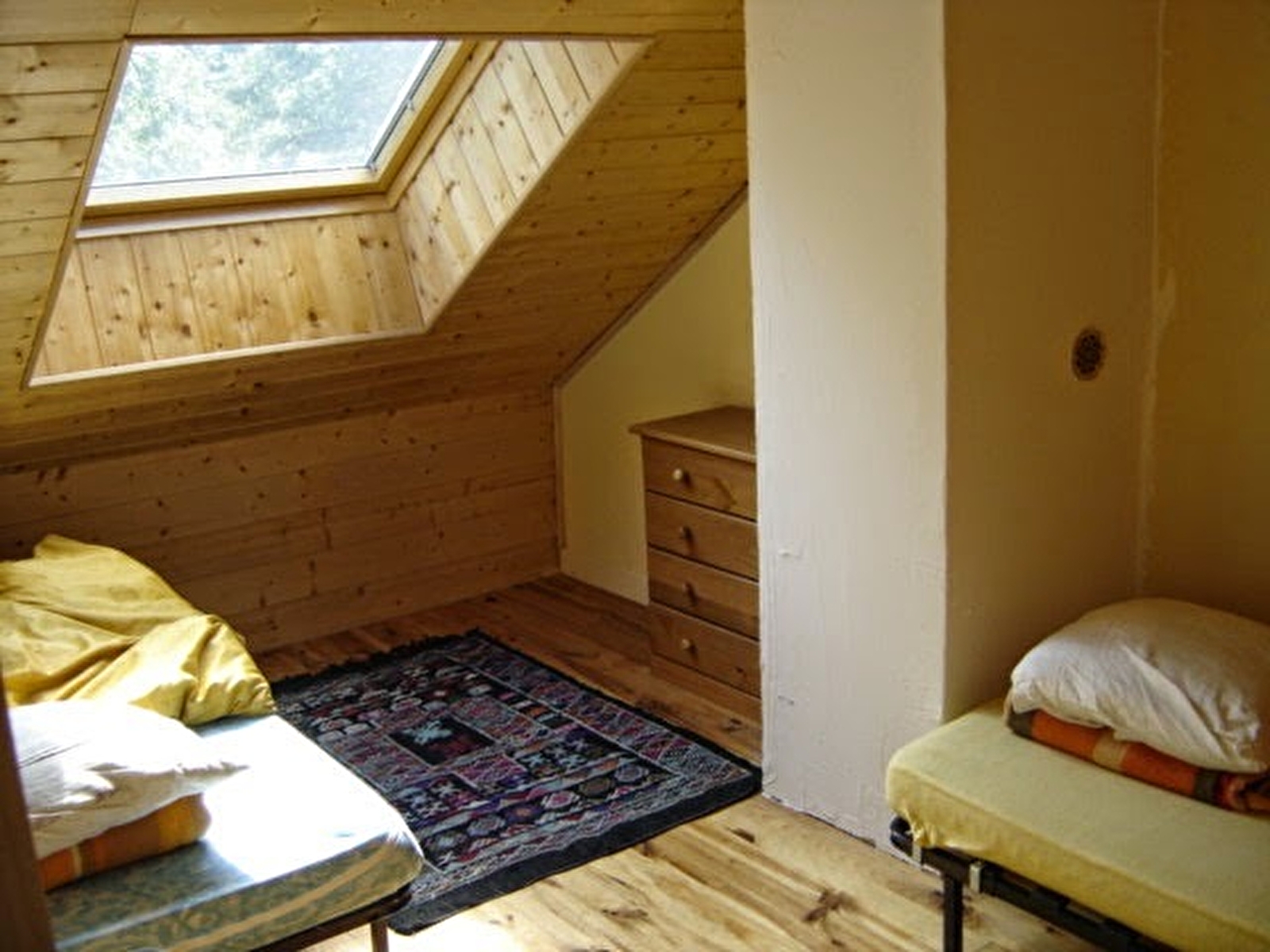 Il comprend une salle à manger avec coin cuisine, une salle de bain avec douche et lave-linge, toilette indépendante au 1er étage. Au 2ème étage, 2 chambres mansardées avec velux, une avec un lit de 140 cm, et une avec 2 lits de 90 cm. Il y a aussi la possibilité pour 2 personnes de coucher dans la banquette-lit de la salle à manger.