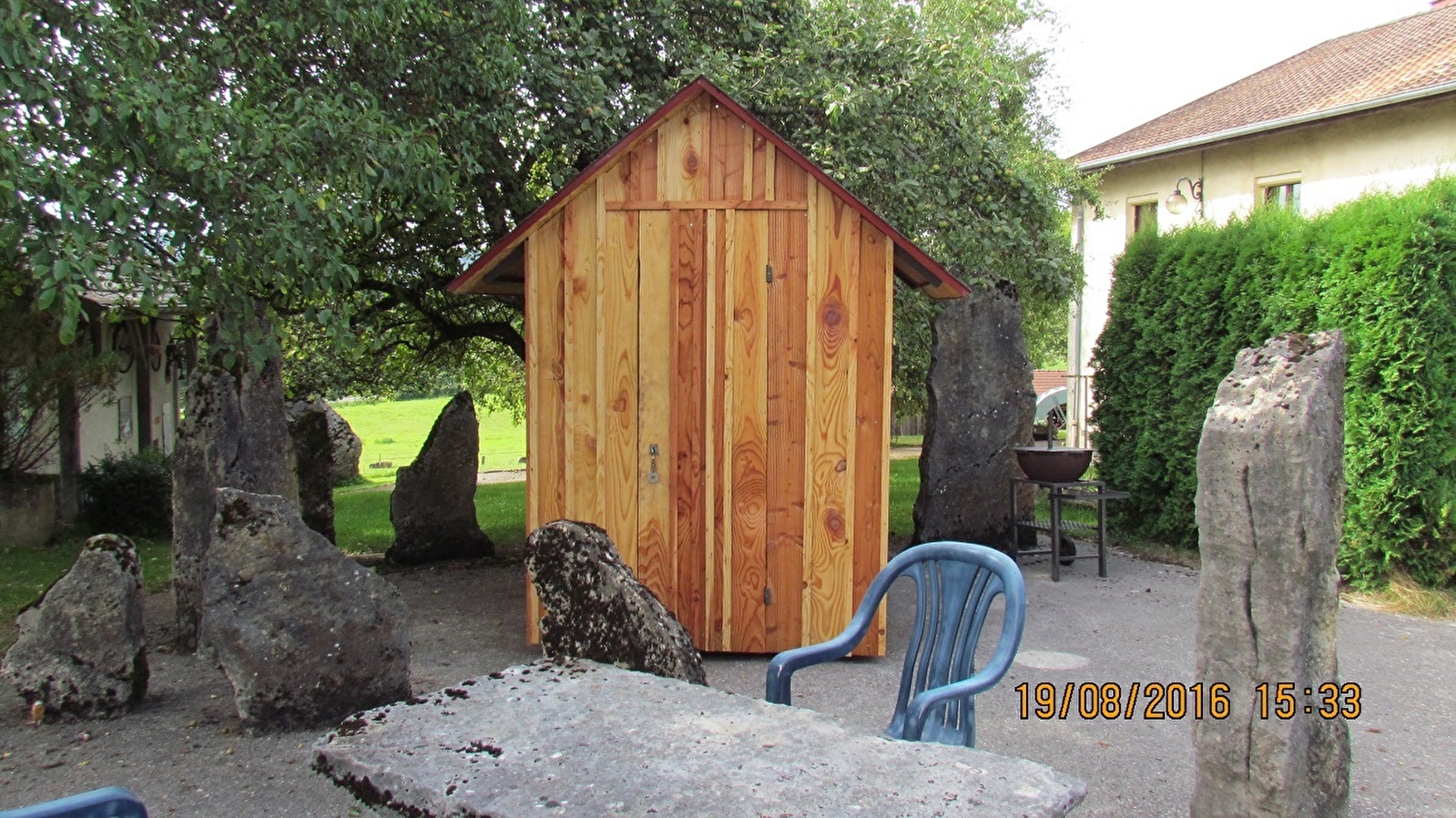 Ancienne ferme rénovée près du lac de Chalain, maison mitoyenne, accès indépendant. RDC: cuisine-séjour, coin salon, salle d'eau. A l'étage: ch1: 1 lit 2 pl + 1 lit 1 pl, coin nuit pour les enfants avec 2 lits superposés. Salon de jardin, barbecue, cour, balançoires, parc de 40a arboré, verdoyant et particulièrement soigné par les propriétaires, passionnés d'outils anciens. Ils auront plaisir à vous faire visiter leur musée de la forge. Eau chaude produite par énergie solaire. Animaux acceptés après entente préalable. Possibilité 5 personnes, contacter propriétaire. Classé 3* meublé tourisme. Animaux: 10€ supplémentaires pour ménage. Cabane tournante à disposition pour les enfants.