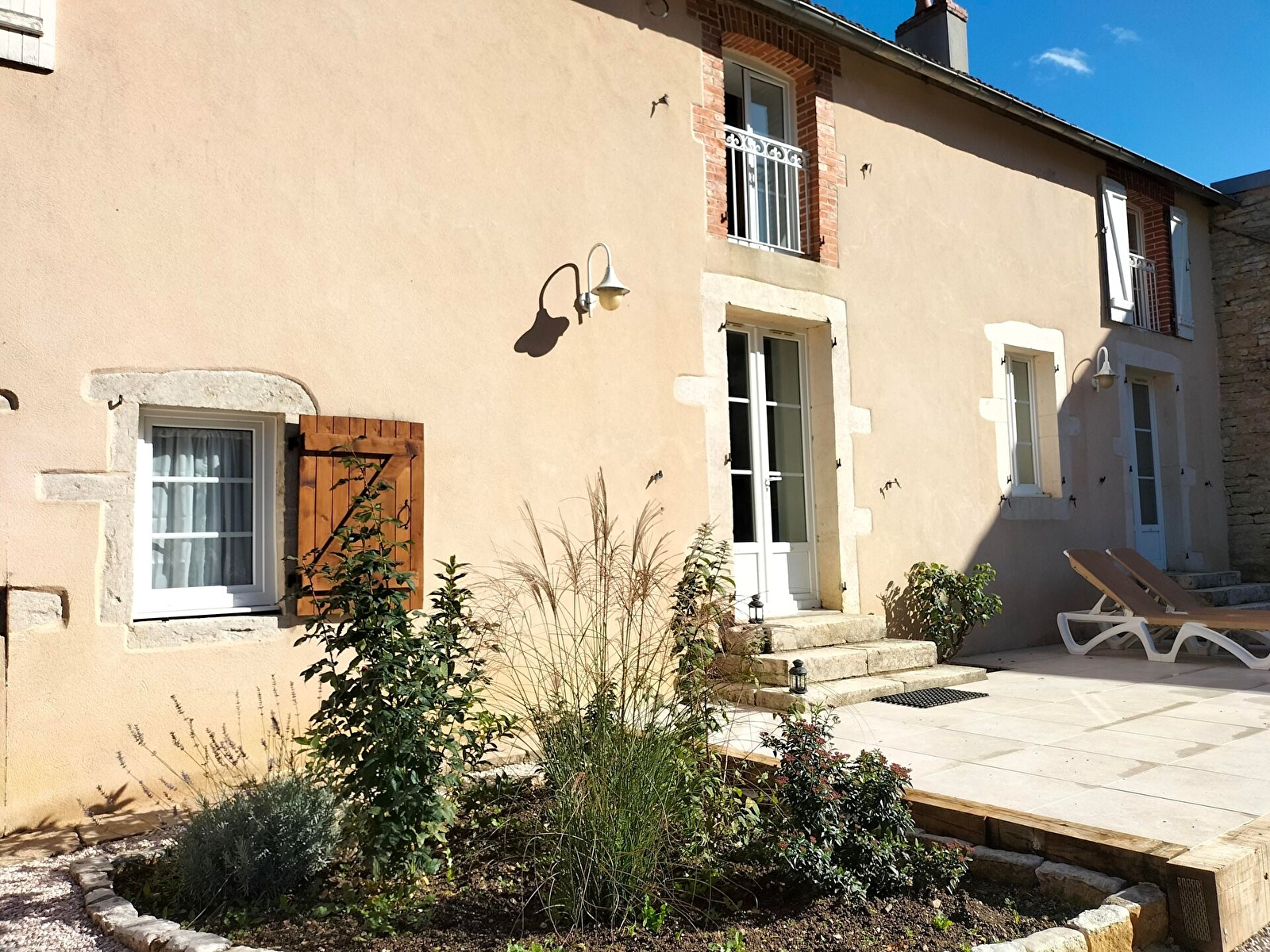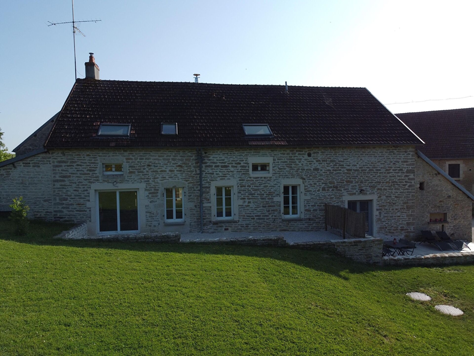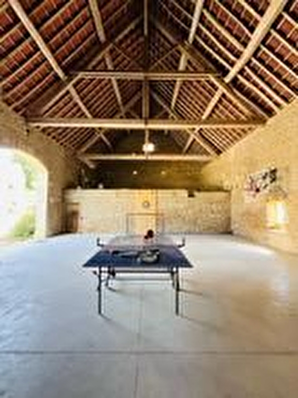 Grand terrasse avec salon de jardin et barbecue. Une table de ping-pong et un jeu de fléchettes sont disponibles, en partage avec le gîte 2 personnes. Les extérieurs sont en cours de finition. A partir de Mi-Juin, mise à disposition d'une grande salle de sports/jeux (150 m²), avec buts de foot, panier de basket, mur de tennis etc...). Terrain non clos. Mare et ruisseau dans la propriété non sécurisés. Il incombe aux locataires de prendre garde à la sécurité de l'espace extérieur en cas de présence de jeunes enfants.