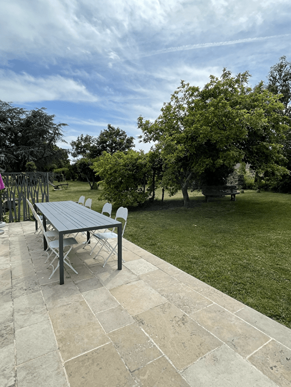 Son ambiance chaleureuse, sa grande table en bois, sa cheminée et son jardin arboré en font un lieu idéal pour partager des moments simples et festifs.