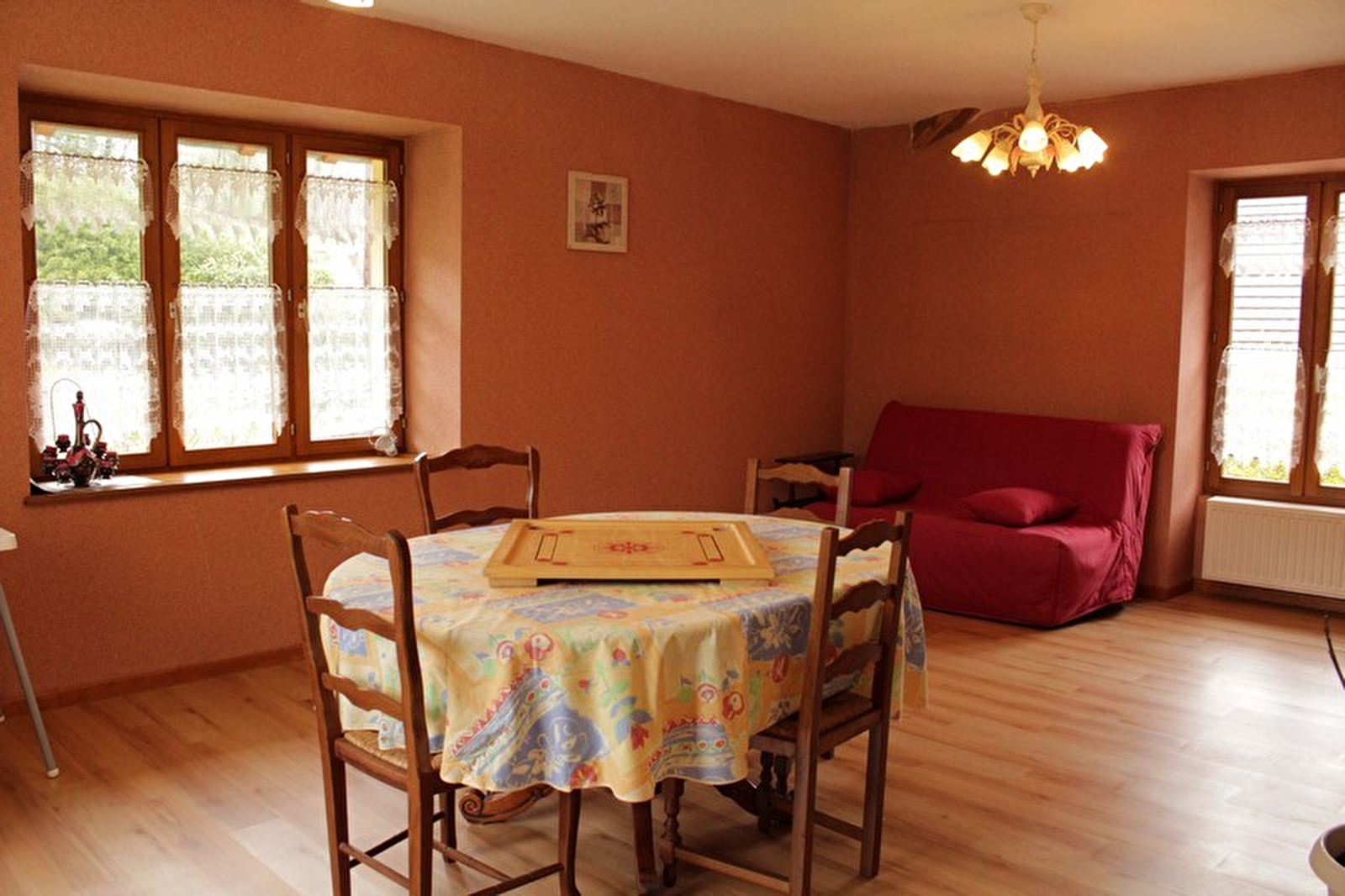 Ancien moulin entièrement rénové, situé dans petit village jurassien à quelques kilomètres du Vignoble. Au 1er étage vous découvrirez une belle et vaste pièce à vivre (cuisine toute équipée avec four) et salle à manger), un salon indépendant et une 3ème pièce avec canapé convertible et espace jeux. Une salle de bain avec douche et baignoire, 1 wc indépendant. Au 2ème étage : 3 chambres : une avec 1 lit en 140, une 2ème avec 2 lits 1 place et une 3ème avec 3 lits 1 pl dont un situé sur la mezzanine. Wc indépendants. Pour les belles journées d'été vous pourrez profitez d'un terrain attenant clos avec jeux pour enfants (trampoline, balançoire) en commun avec les propriétaires. Pour vos repas, vous disposerez d'une terrasse en balcon avec salon de jardin et barbecue. Pour les amoureux de la nature : la rivière devant le gîte est ouverte à la pêche (carte obligatoire).