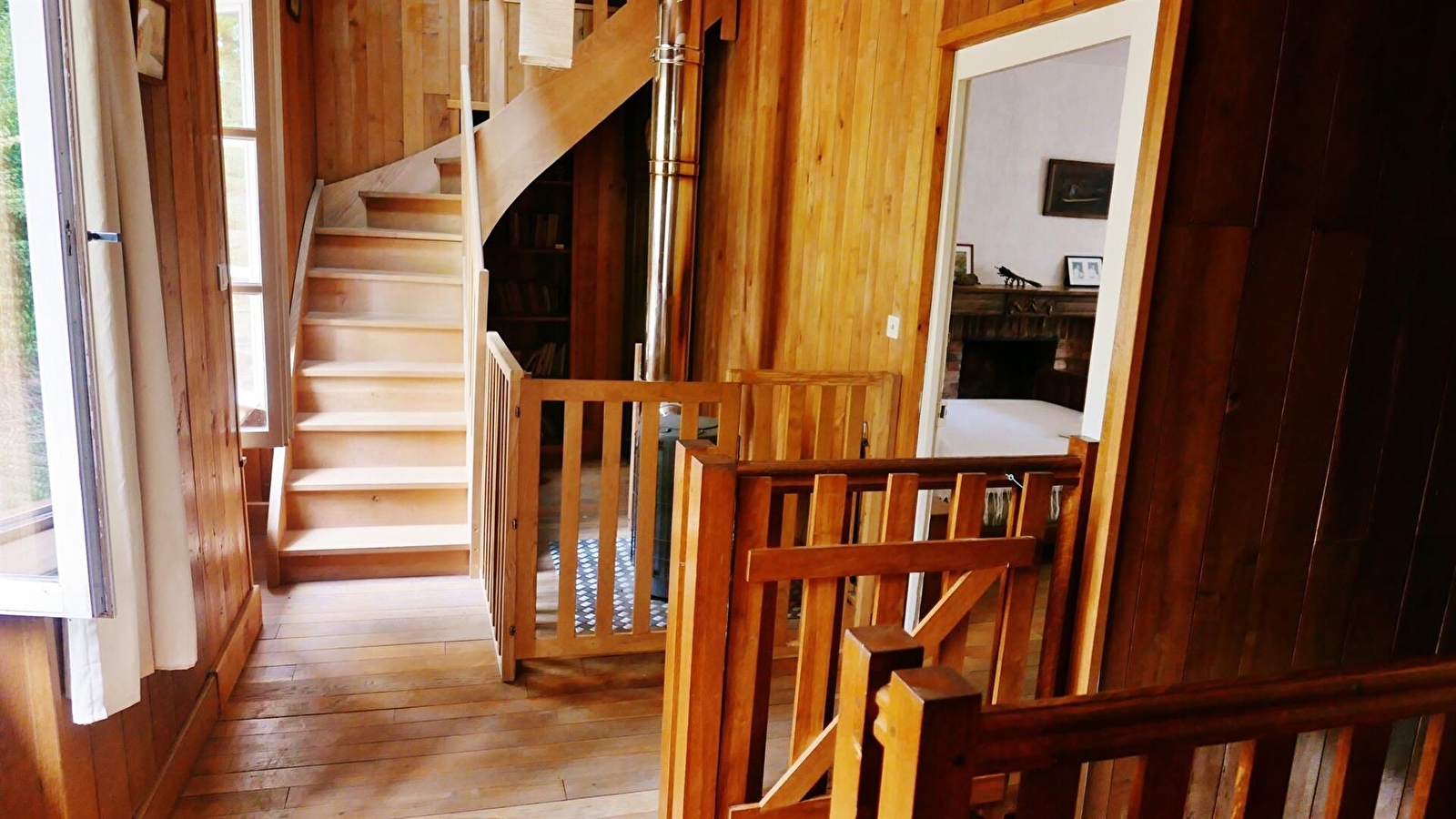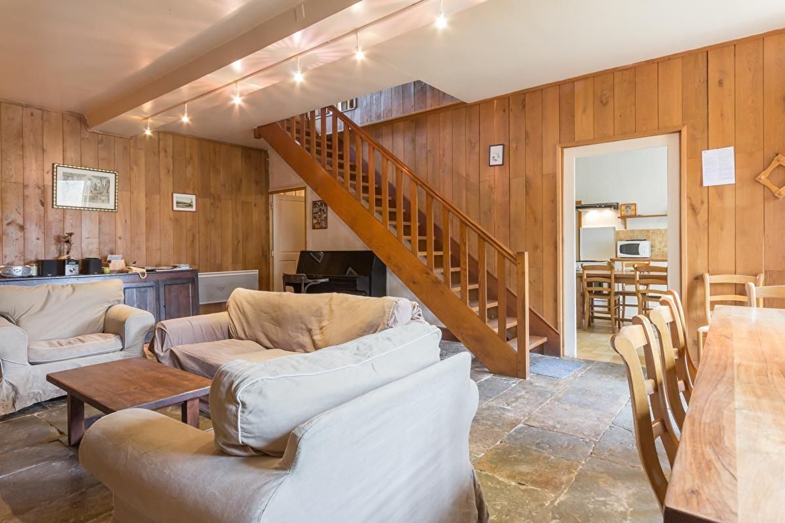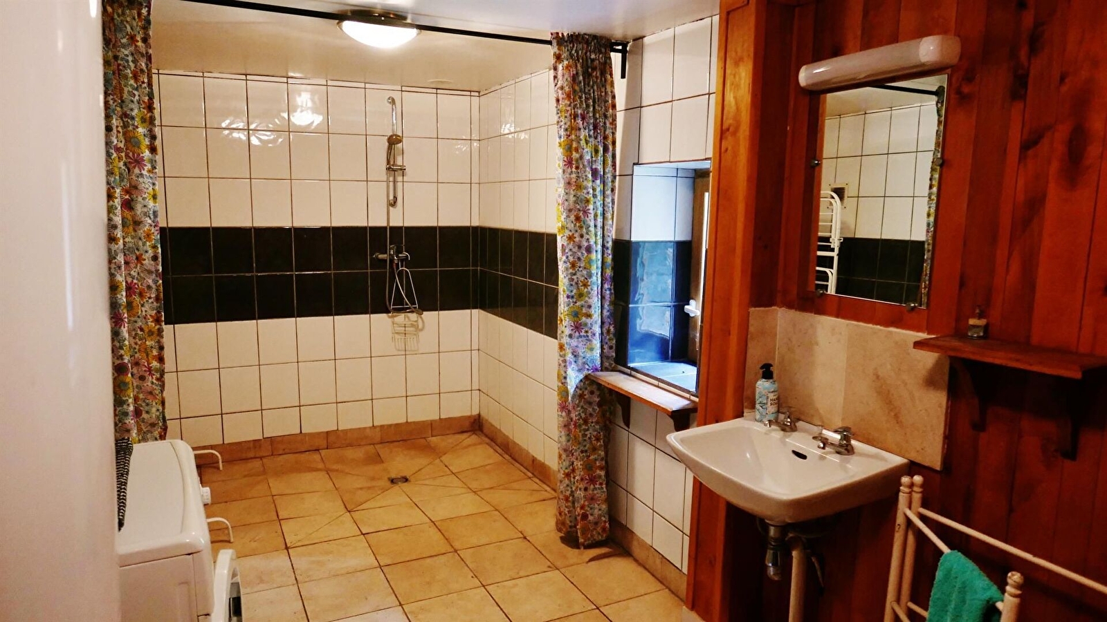 Rez-de-chaussée : salle à manger - salon avec dalles anciennes, cheminée et piano. Cuisine. 1 chambre avec 2 lits 90. Salle d'eau, wc. Etage 1 : 2 chambres, une avec 1 lit 140 et 1 lit 90, la 2ème avec 1 lit 140. Salle de bains avec wc. Le 2ème étage est une extension en bois récemment créée avec 2 chambres (une avec 1 lit 160 et l'autre avec 2 lits en 90) et salle d'eau avec WC. Grand terrain sur 10 ha de forêt privée.