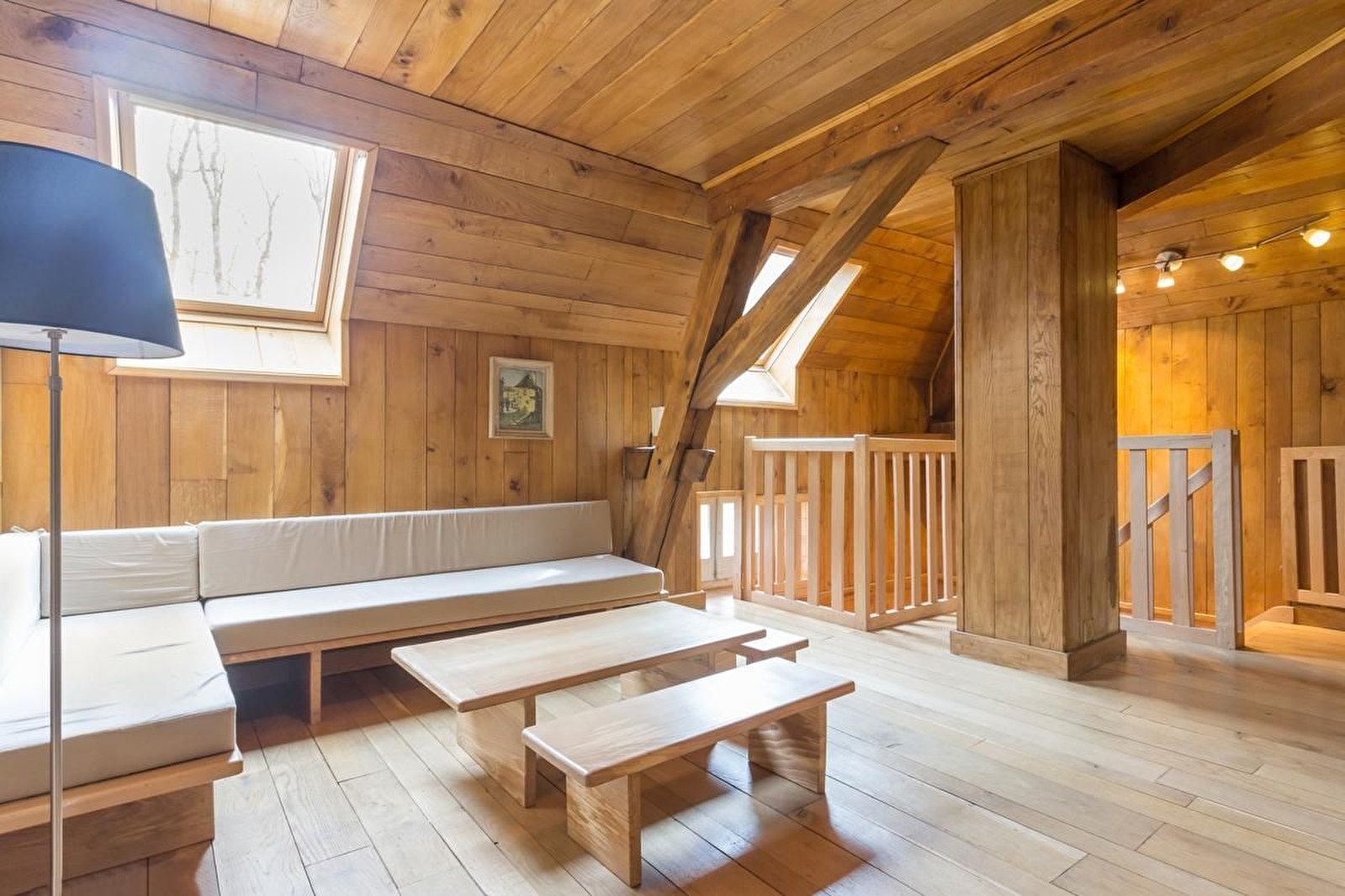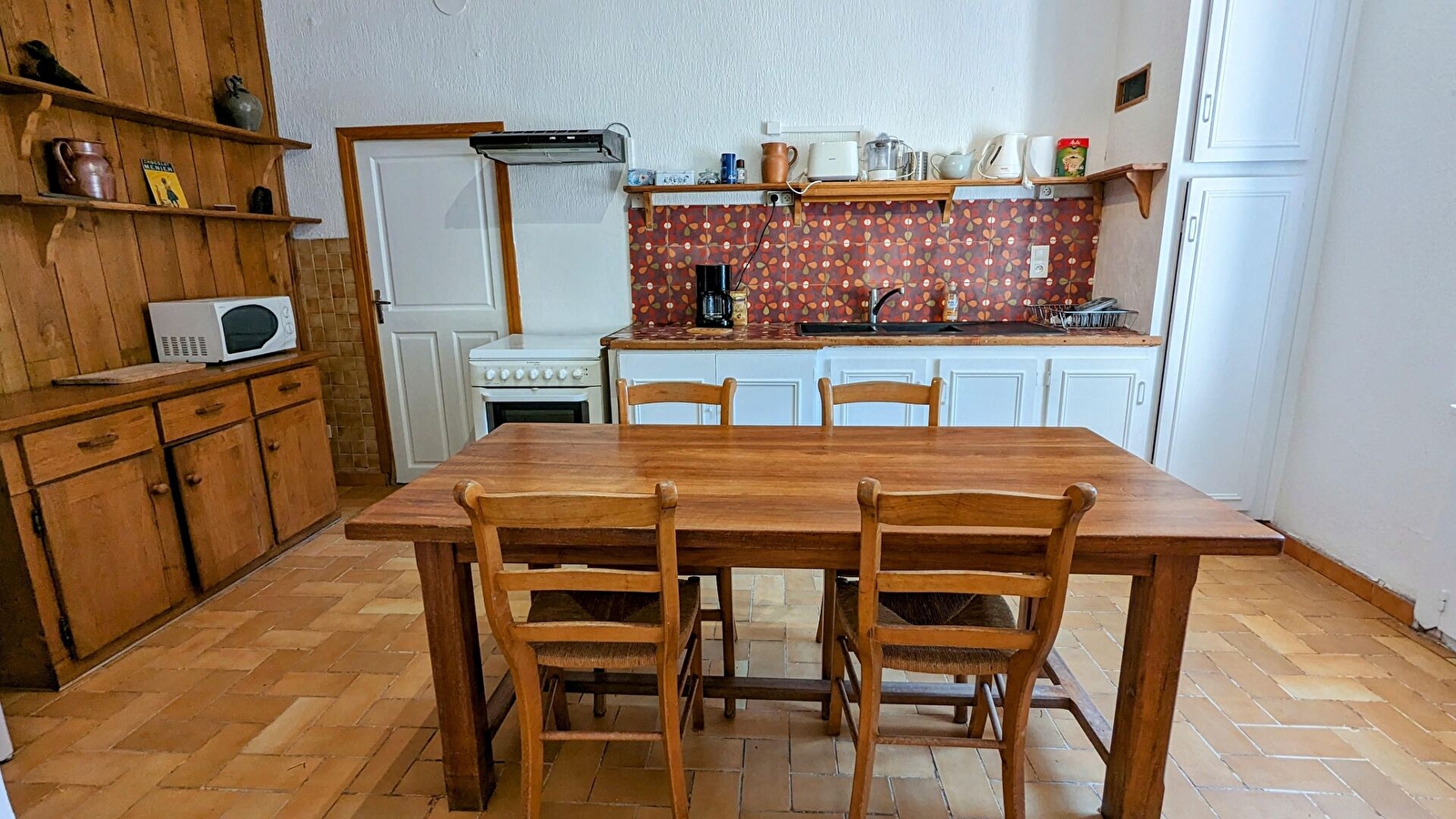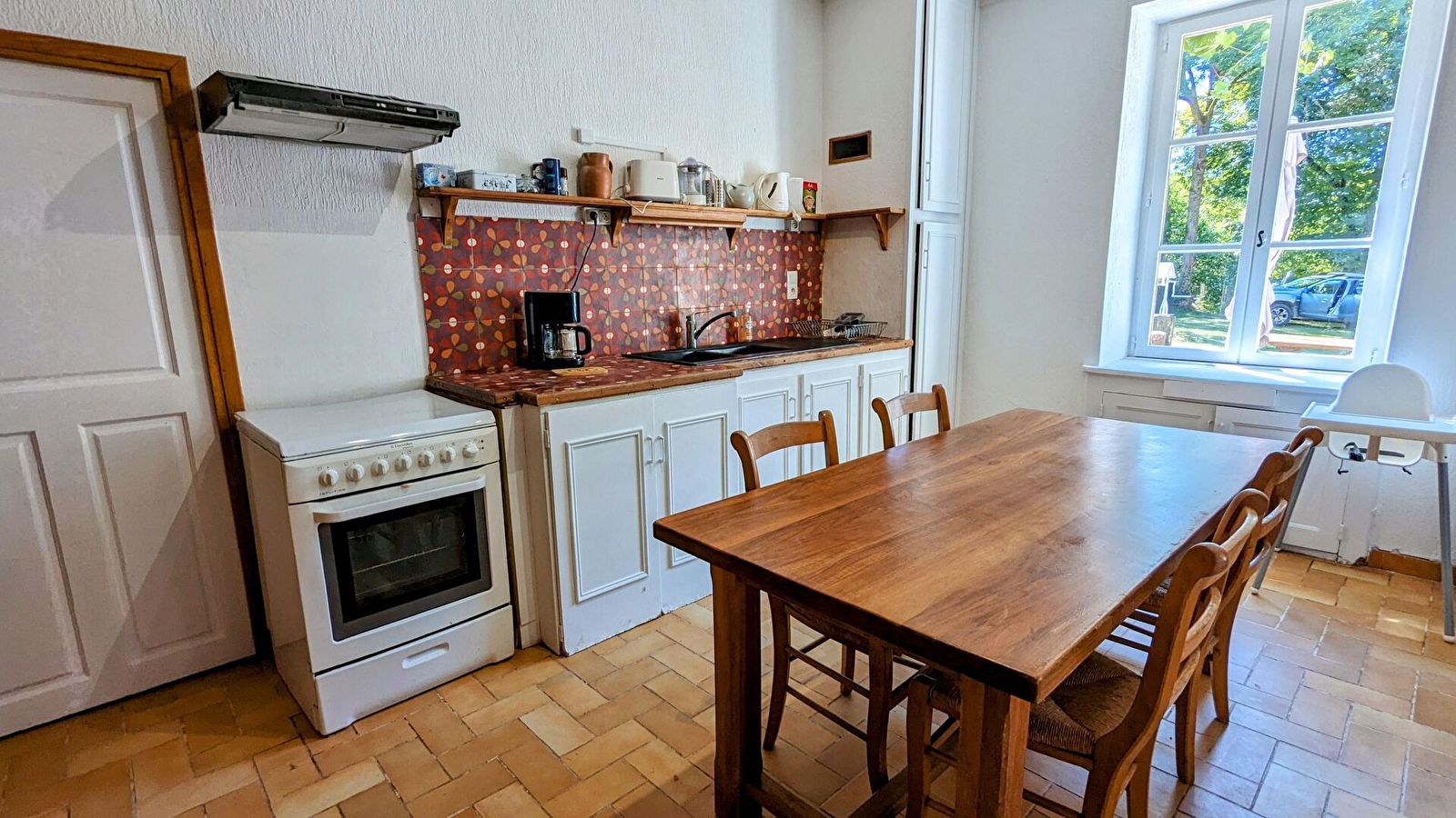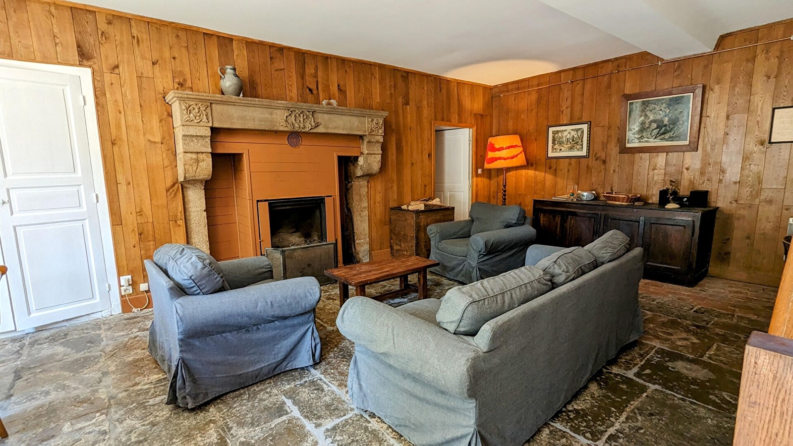 Rez-de-chaussée : salle à manger - salon avec dalles anciennes, cheminée et piano. Cuisine. 1 chambre avec 2 lits 90. Salle d'eau, wc. Etage 1 : 2 chambres, une avec 1 lit 140 et 1 lit 90, la 2ème avec 1 lit 140. Salle de bains avec wc. Le 2ème étage est une extension en bois récemment créée avec 2 chambres (une avec 1 lit 160 et l'autre avec 2 lits en 90) et salle d'eau avec WC. Grand terrain sur 10 ha de forêt privée.