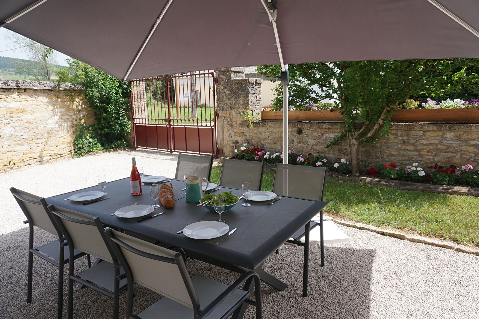 Cuisine avec insert. Vaste salon très lumineux. 3 chambres dont 2 avec 1 lit 160 chacune et la 3ème avec 2 lits 90 jumelables. Salle d'eau avec douche à l'italienne. Wc. Chauffage central bois inclus. Cour close 150 m². Accès au jardin commun du moulin avec balançoire. Garage pour petite voiture.