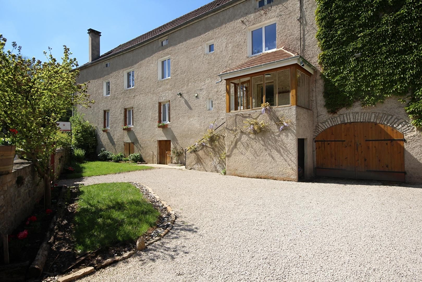 Dans village avec tous commerces, gîte indépendant aménagé au rez-de-chaussée surélevé d'un ancien moulin où habitent les propriétaires.