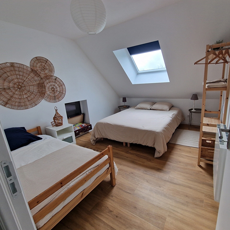 C'est une chambre familiale avec son lit double et son lit simple mais elle peut aussi se transformer en séparant le lit double en 2 lits individuels.