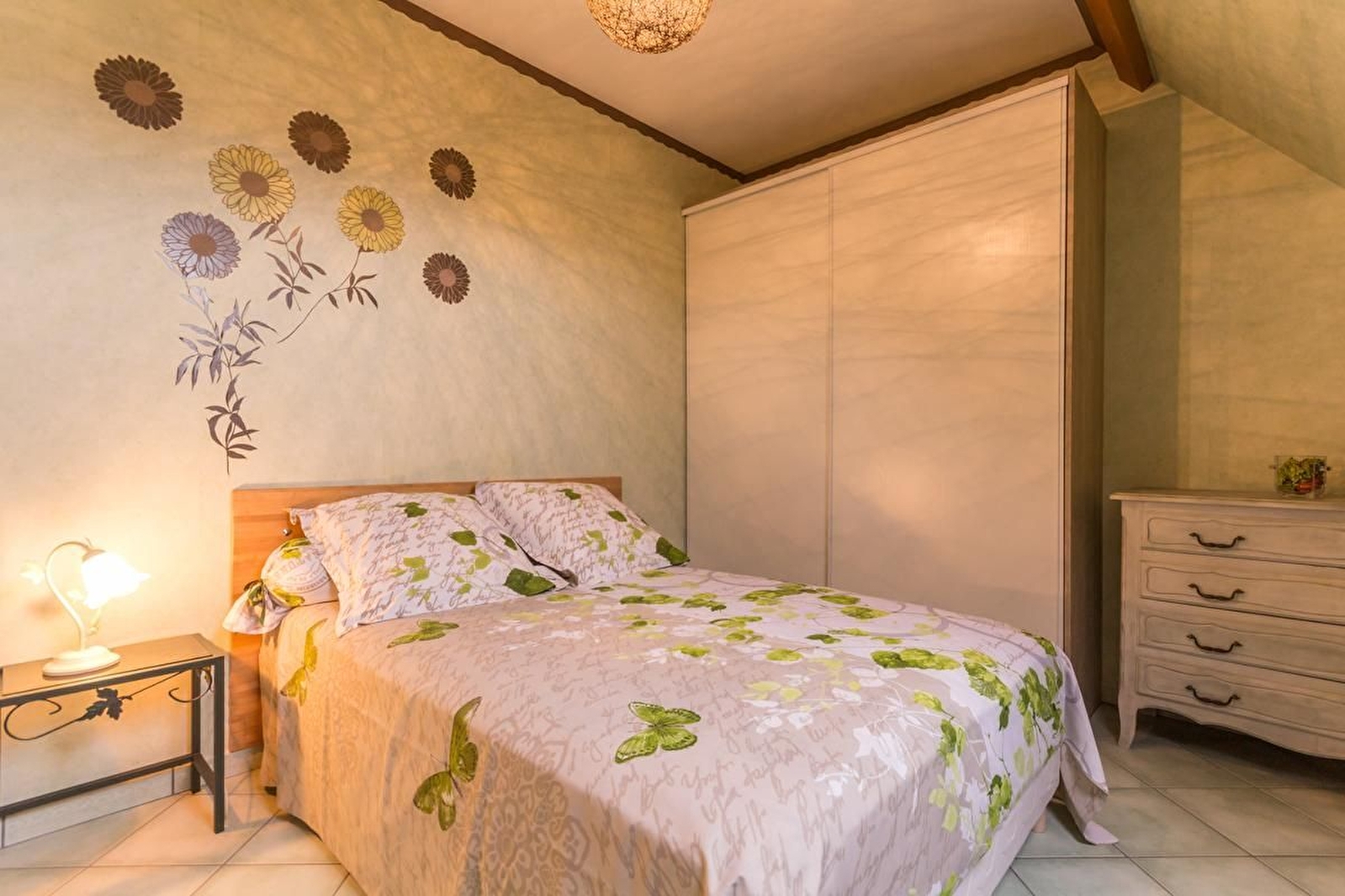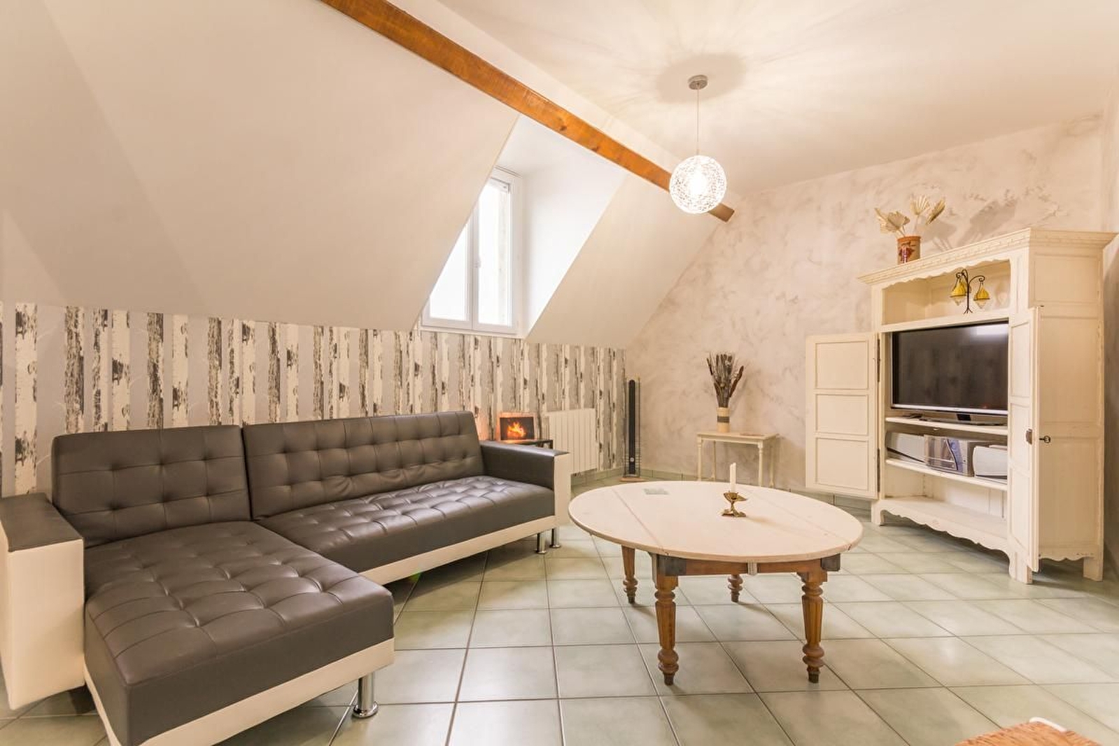 A l'étage, on trouve un vaste séjour avec cuisine équipée et salon avec canapé convertible pour 2 personnes. Une chambre avec un lit 140. Salle d'eau et WC séparé. Décoration soignée et atmosphère chaleureuse.