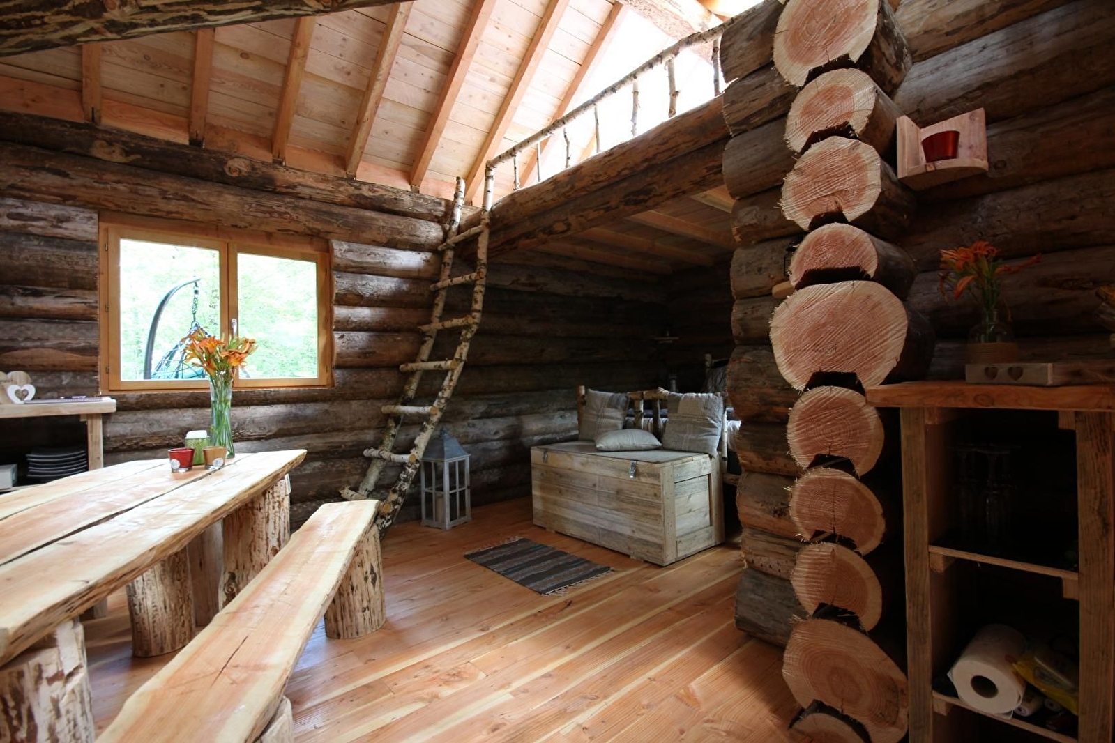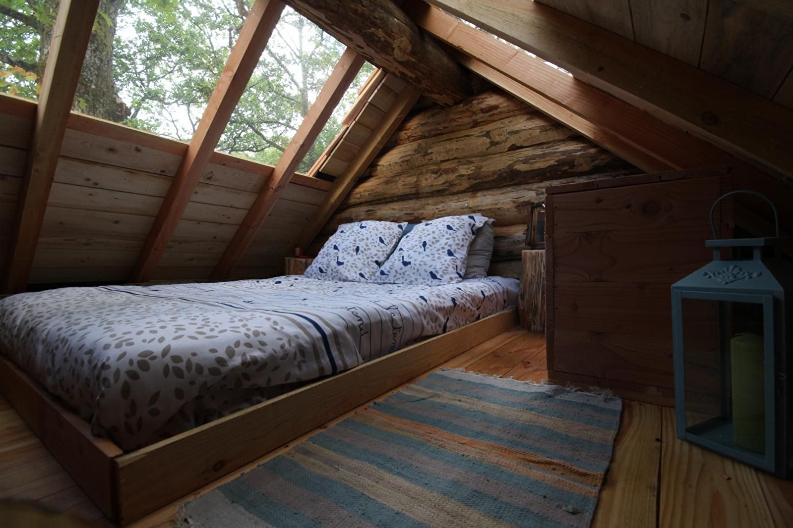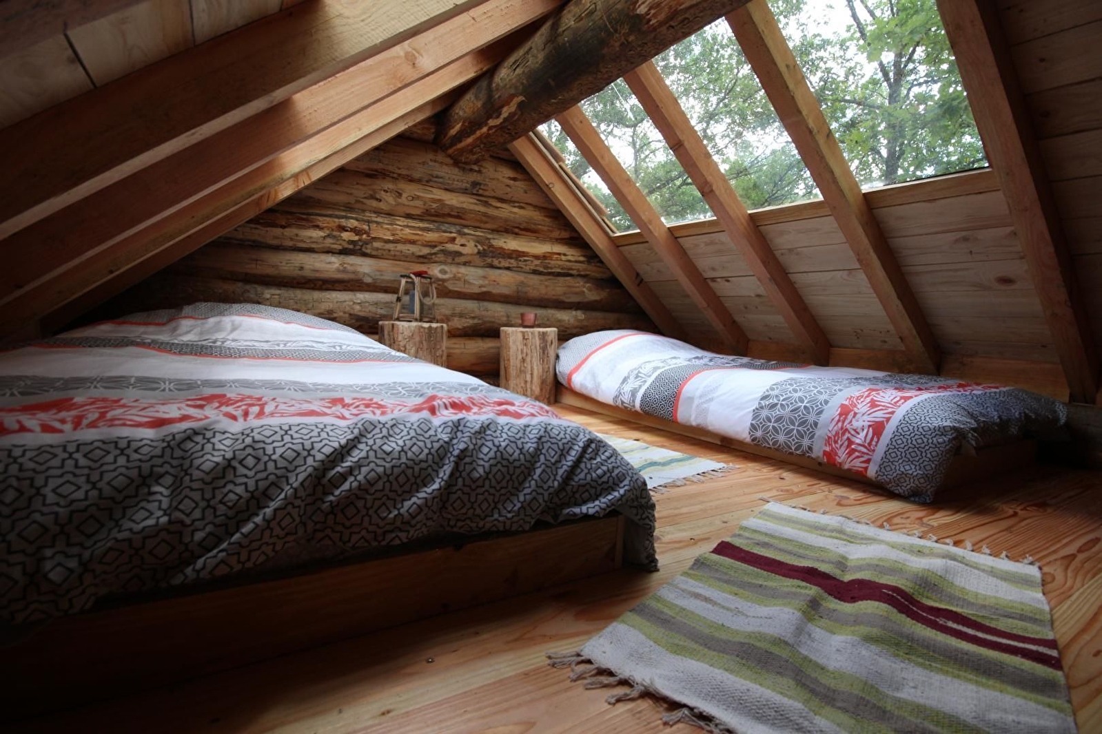 Elle met à disposition une belle pièce à vivre avec un lit 140 et 2 mezzanines au plus près des étoiles, accessibles par une échelle en bois, avec 2 lits 90 pour l'une et 1 lit 140 pour l'autre.