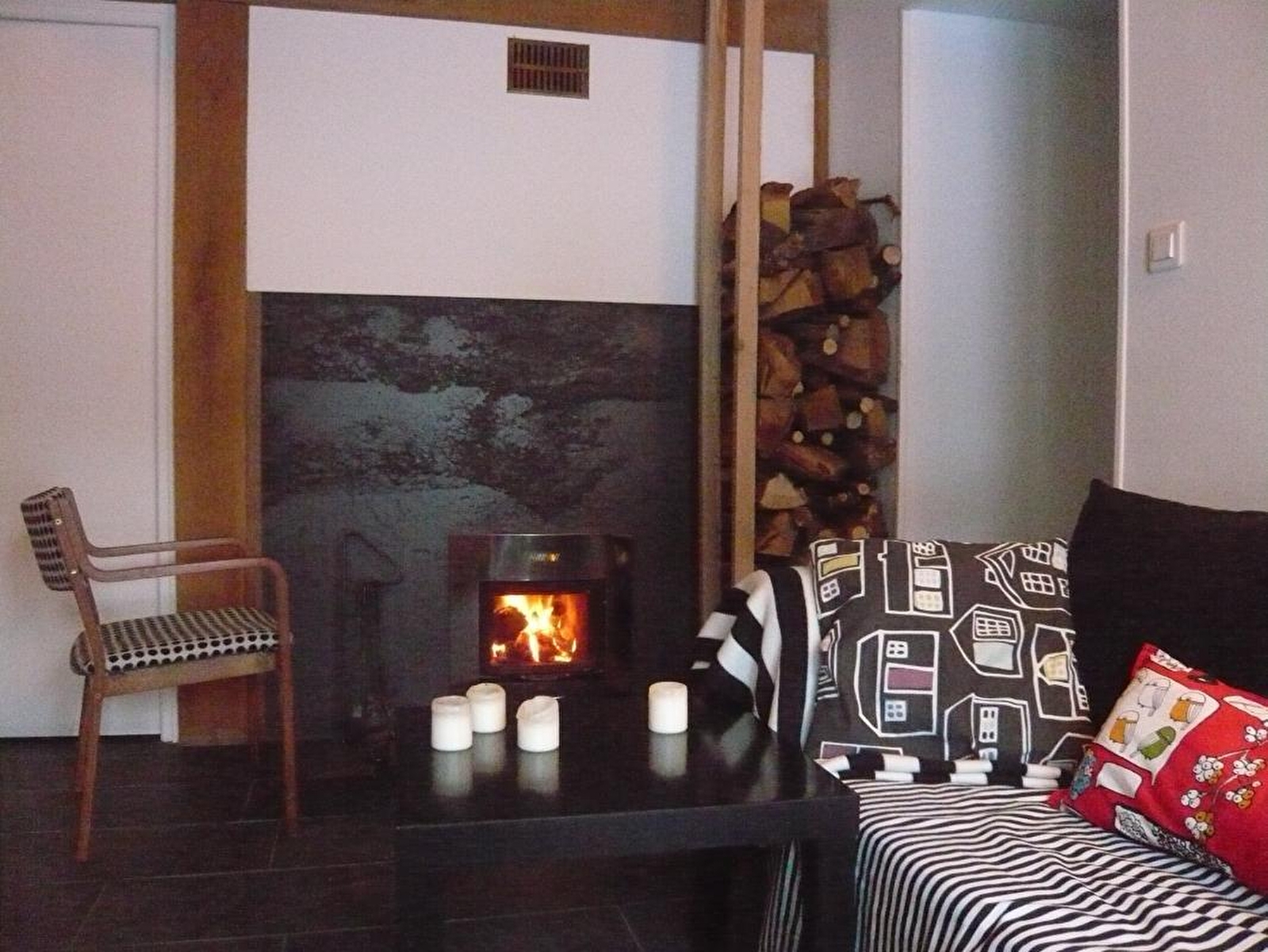 Composition : Maison individuelle. Chauffage électrique + poêle (bois inclus). Rdc : séjour-cuisine, salon, espace sauna avec douche/wc. 1er étage: 2 chambres (2 lits 1 p. 90x200cm superposés / 2 lits 90x200cm jumelables en lit 2 p. 180x200cm + banquette-lit 2 p. 160x190cm en appoint) dont une très vaste comprenant salle d'eau semi ouverte (douche/wc). Jardin clos + double terrasse + parking + abri couvert voiture + local vélos privés. Petits commerces 1.5 km. Supérette 6 km. Commodités et supermarché 12 km.