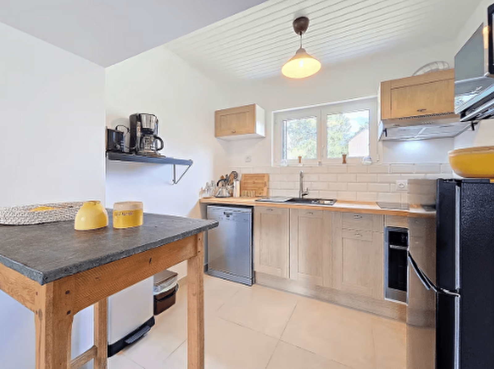 Maison de deux chambres dont une familiale, cuisine équipée. Parking devant la maison. Boite à clés
