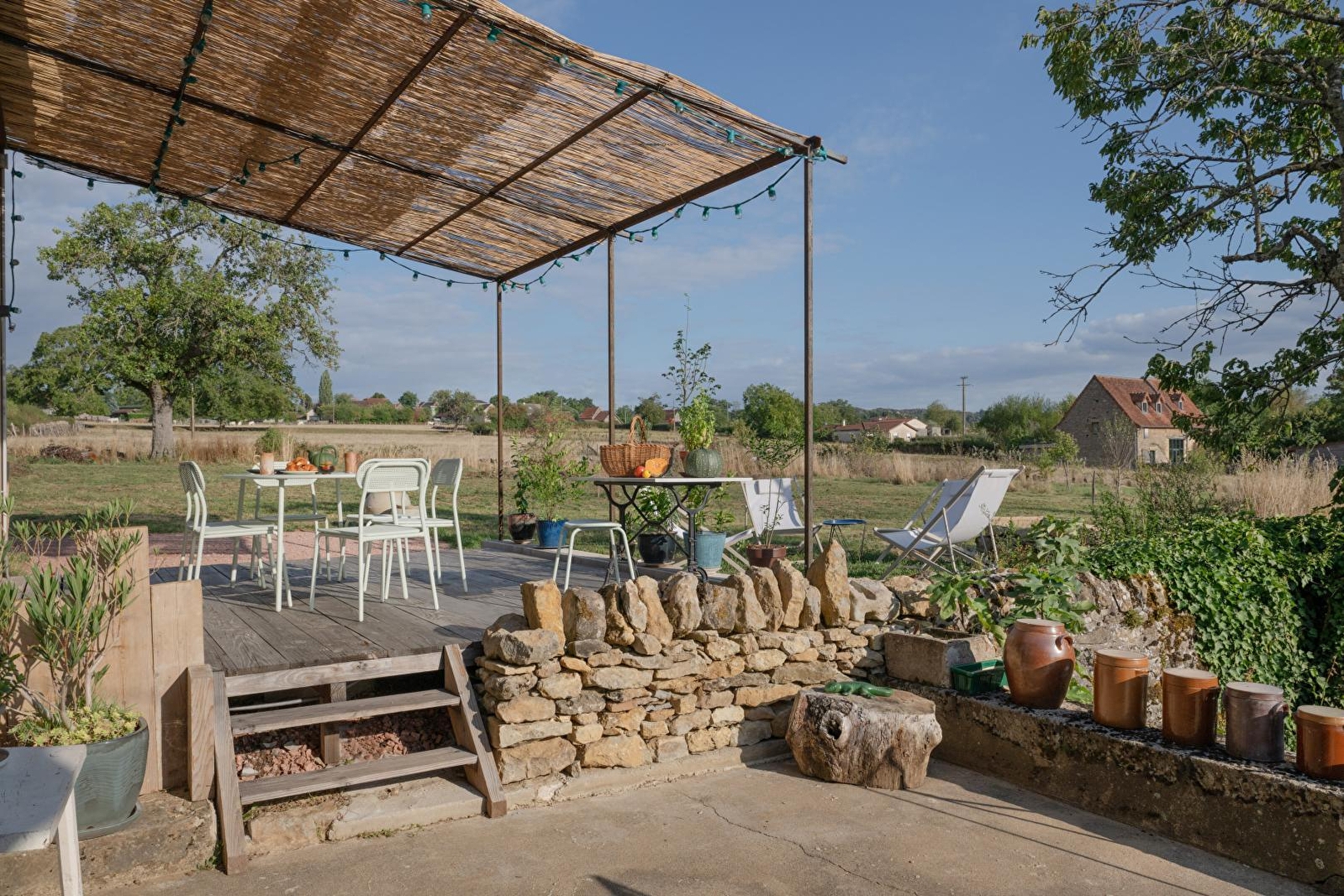 Sabine (artiste céramiste dont vous pourrez apprécier les œuvres sur place / atelier visitable au village) & Denis (passionné de jardinage), vous accueillent au sein d'une authentique ferme traditionnelle du XIXe très soigneusement réhabilitée dans les règles de l'art, blottie au calme en pleine campagne brionnaise préservée, en lisière de douces pâtures accueillant les célèbres & paisibles vaches charolaises en saisons, à deux pas d'un mini vignoble (rareté locale !). Totale tranquillité au sein d'un petit hameau rural typique, lové sur une douce colline exposée dominant un vaste vallon de magnifique bocage boisé, non loin du pittoresque "cœur de bourg". Écrin paysagé vallonné de toute beauté. Ultra reposant & relaxant. Spacieux gîte de très bon confort. Belle pièce de vie lumineuse dotée d'un beau volume "cathédrale" (à l'endroit de l'ancienne grange). Chaleureux cachet d'esprit "campagne chic" aux accents contemporains mixant traditions & modernité dans un savoureux "mix & match", sublimé par l'âme du bâti d'origine (mur en pierres, charpente, escalier en bois, tommettes…). Énormément de charme & caractère. Ambiance "enveloppante", cosy & douillette. Large terrasse ombragée sous une canisse ouverte sur le potager du propriétaire (présence passagère possible durant votre séjour) & un agréable jardin de 3000m² aménagé en "permaculture" (cerisiers, figuier, poirier, framboisiers, groseilliers & cassissiers… / cueillette possible) offrant une superbe vue dégagée & une appréciable "aire de jeux naturelle" pour les enfants.