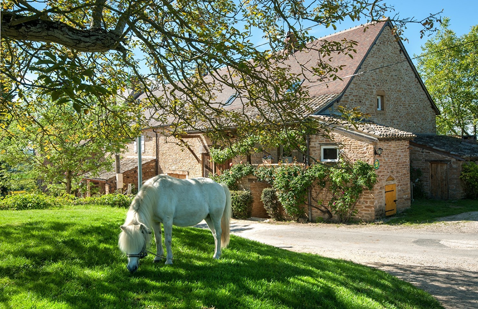 Spécialisée dans l'enseignement de l'équitation auprès des enfants, Laurence & Nicolas vous accueillent au sein d'un authentique corps de ferme de caractère du XVI siècle chargée d'histoire, restauré avec soins (jadis lié aux célèbres seigneurs de Brancion). Calme absolu au creux d'un écrin champêtre préservé, dominant une bucolique plaine de bocage, rivières & prairies, sur les contreforts des collines boisées du massif sud Bourgogne (territoire naturel protégé parsemé de nombreux chemins de randonnées & splendides point de vue) jouxtant le pittoreque petit village typique d'Etrigny & son riche patrimoine. Au sein d'une vaste propriété familiale de 15 ha abritant une école d'équitation « poney-club » dédiée aux enfants de 2 à 12 ans & une insolite ferme découverte uniquement dotée d'espèces « miniatures » très dociles (« mini » vaches, cochon, moutons, chèvres, ânes, lapins…). Nombreuses activités découverte de la nature, des animaux & de l'équitation sur place. Superbe panorama & paysages. Spacieux gîte de bon confort. Chaleureux cachet campagnard. Restauration patrimoniale soignée (plafond, poutres, cheminée… d'origine). Charmante ambiance dépaysante d'une ancienne demeure. Ravissant spacieux jardin intimiste clos - arboré, fleuri & végétalisé - doté d'une large terrasse (exposé & ombragée) lové en lisière de prairie. Agréable balcon abrité.