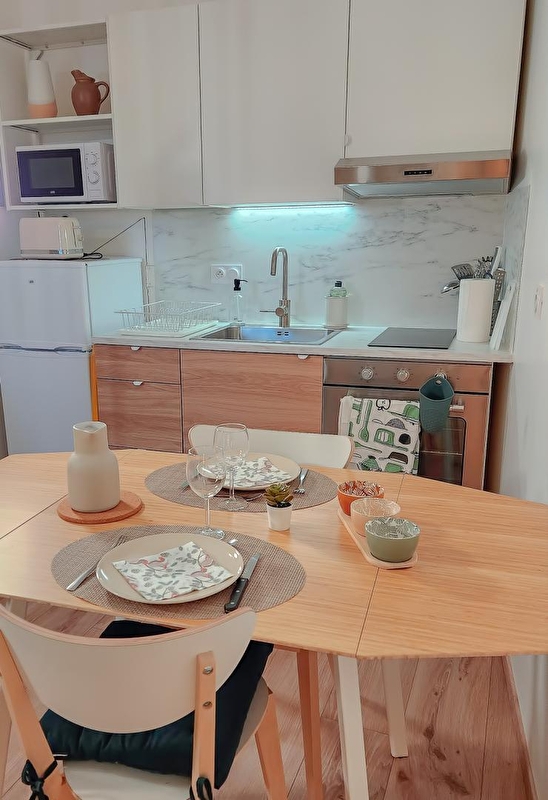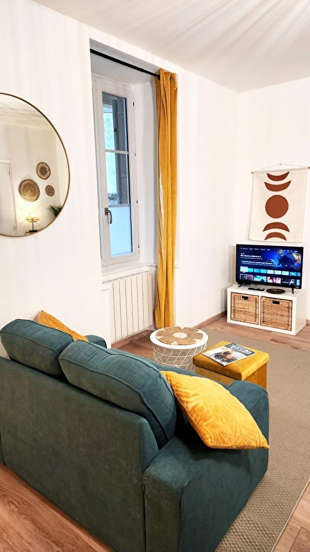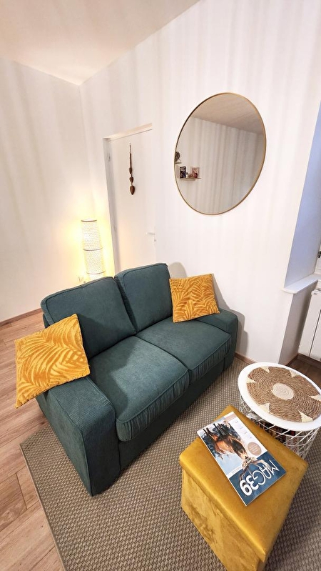 Le petit Polignois est un charmant F2 de 35m2 refait à neuf en rez-de-chaussée d'un immeuble situé en plein centre de Poligny, la capitale du Comté. Vous y trouverez une cuisine équipée (four, plaque induction, micro-ondes, réfrigérateur/congélateur, Cafetière, Nespresso, bouilloire, appareil Raclette 2 pers) ouverte sur coin repas et sur le salon. Celui-ci dispose d'un canapé 2 places, d'une télévision (amazon prime, molotof tv), internet rapide avec la fibre, jeux de société, magasines, livres et de la documentation de tourisme local. Vous découvrirez aussi : -Une salle de douche avec WC et lave-linge (étendoir et fer à repasser). -Une chambre lit 2pers (140x190), + Lit bébé sur demande, à disposition. Vous trouverez toutes les commodités (Commerces, restaurants, pub, fruitière à découvrir à pied !) dans cette commune d'un peu plus de 4000 habitants est entourée du charme du vignoble Jurassien et de forêts. La ville est un centre touristique et culturel local avec notamment quinze édifices protégés au titre des monuments historiques et la présence de la Maison du comté, un musée consacré au célèbre fromage. Poligny est considérée comme la capitale du comté, notamment parce qu'elle regroupe de nombreuses caves d'affinage (JuraFlore, Monts et Terroirs, Fromageries Vagne...) qui totalisent environ 200 000 meules et une École nationale d'industrie laitière. La commune produit également des vins du Jura et fut, en 1997, la première à accueillir la Percée du vin jaune, devenue une des plus importantes fêtes viticoles françaises. Pour les amoureux de la nature, vous découvrirez également les forêts, les vignes, les cascades, les lacs, les grottes et les nombreux chemins de randonnées qui jalonnement le relief. Toutes les saisons vous permettront de vous garantir un séjour sous le signe de la nature, la simplicité, le charme et l'authenticité. Nous sommes impatients de vous accueillir. Parking sur la place située à 20 mètres.