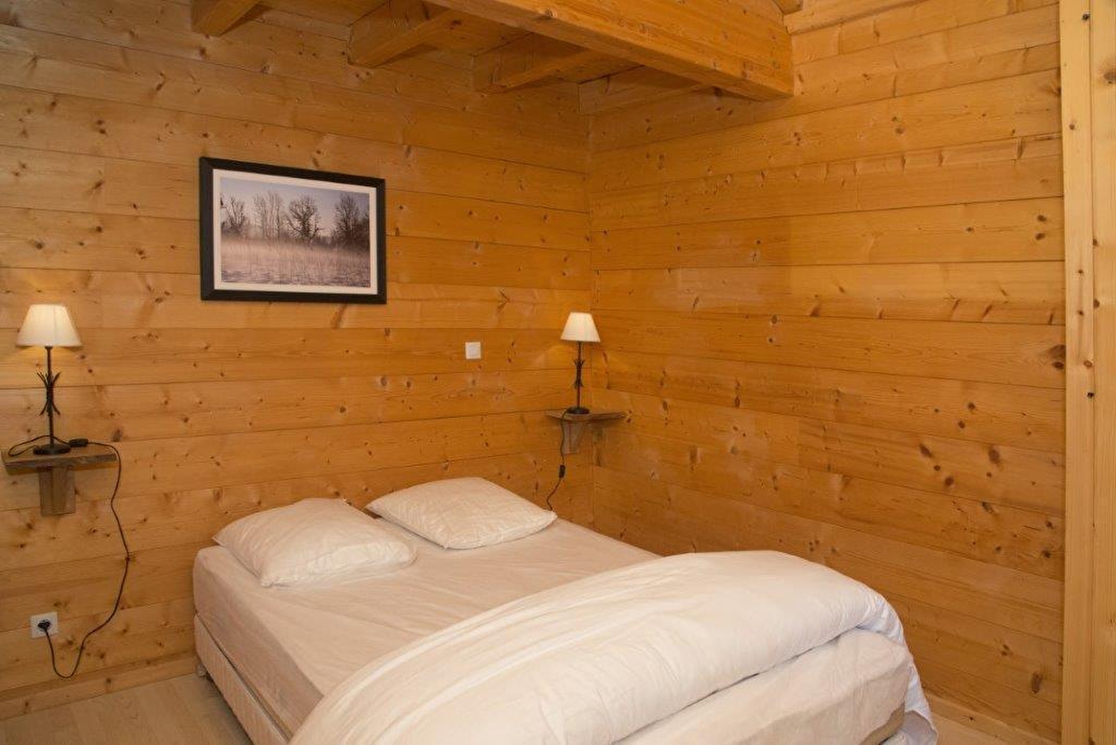 Chalet bois indépendant situé en plein cœur de la région des lacs. Ce gîte de plain pied se compose d'un hall d'entrée, d'une grande pièce à vivre avec salon, salle à manger et coin cuisine, 3 chambres avec 1 lit 2 placeS (possibilité d'un couchage supplémentaire dans l'une des chambres), salle d'eau, wc indépendant, garage. Terrain attenant non clos avec terrasse, salon de jardin et barbecue. Caution de 150 € par animal.
