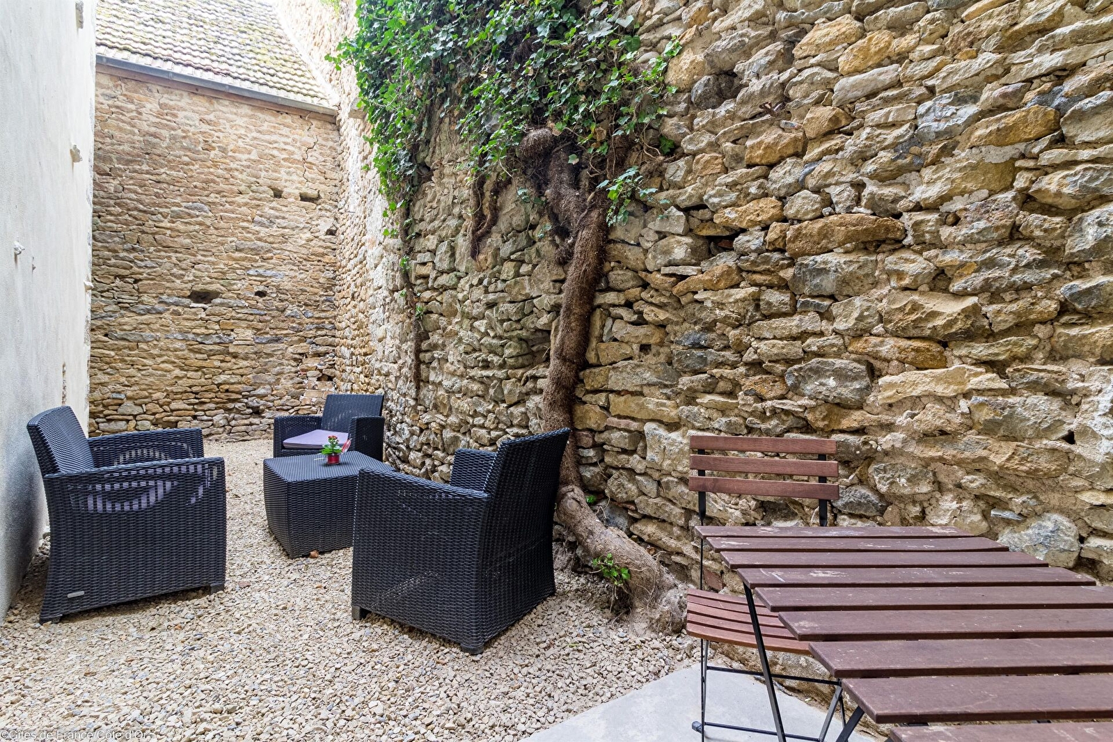 Petite cour fermée à l'abri des regards, à l'arrière de la maison avec terrasse et mobilier, barbecue.