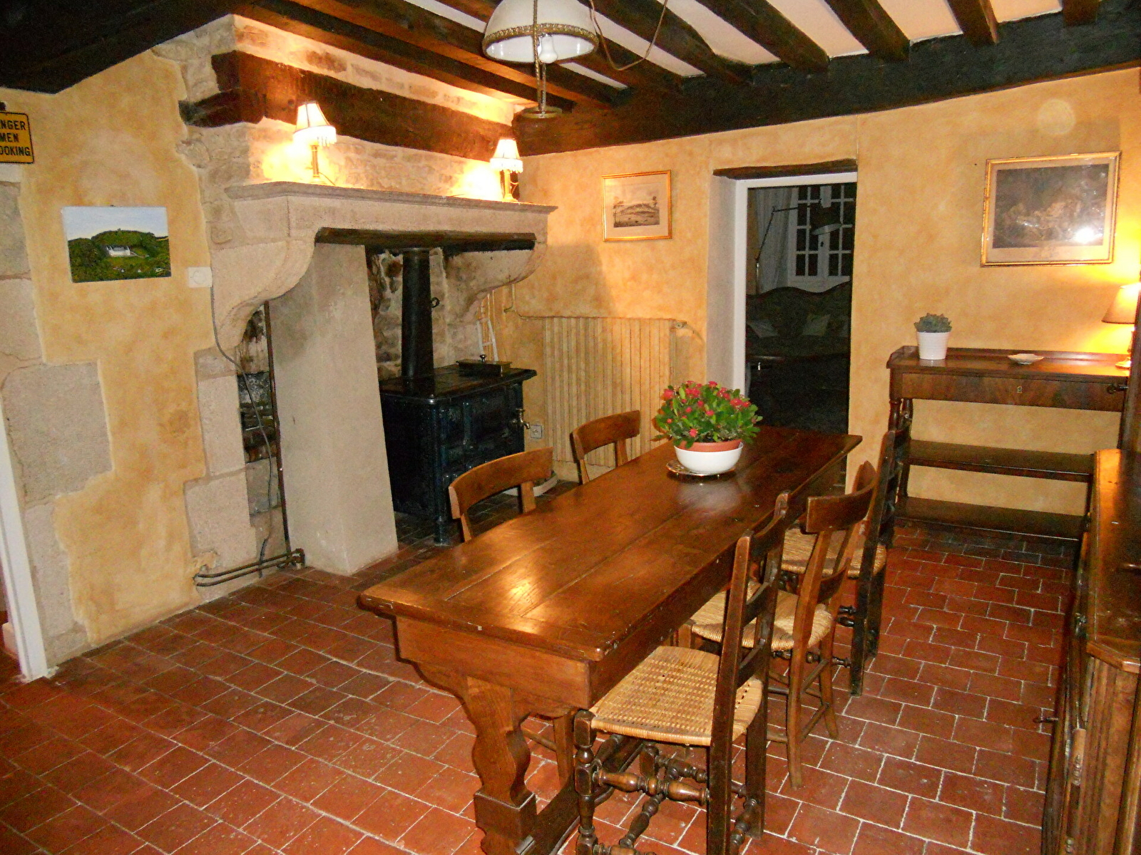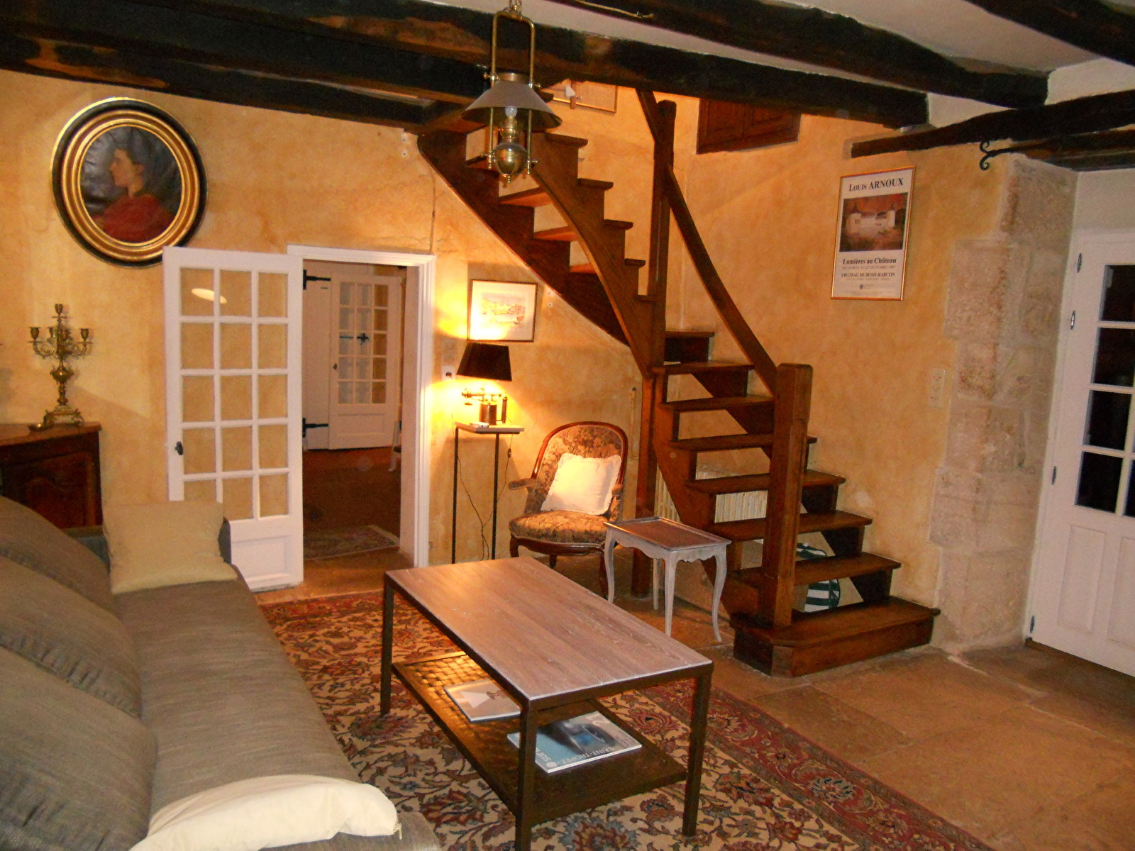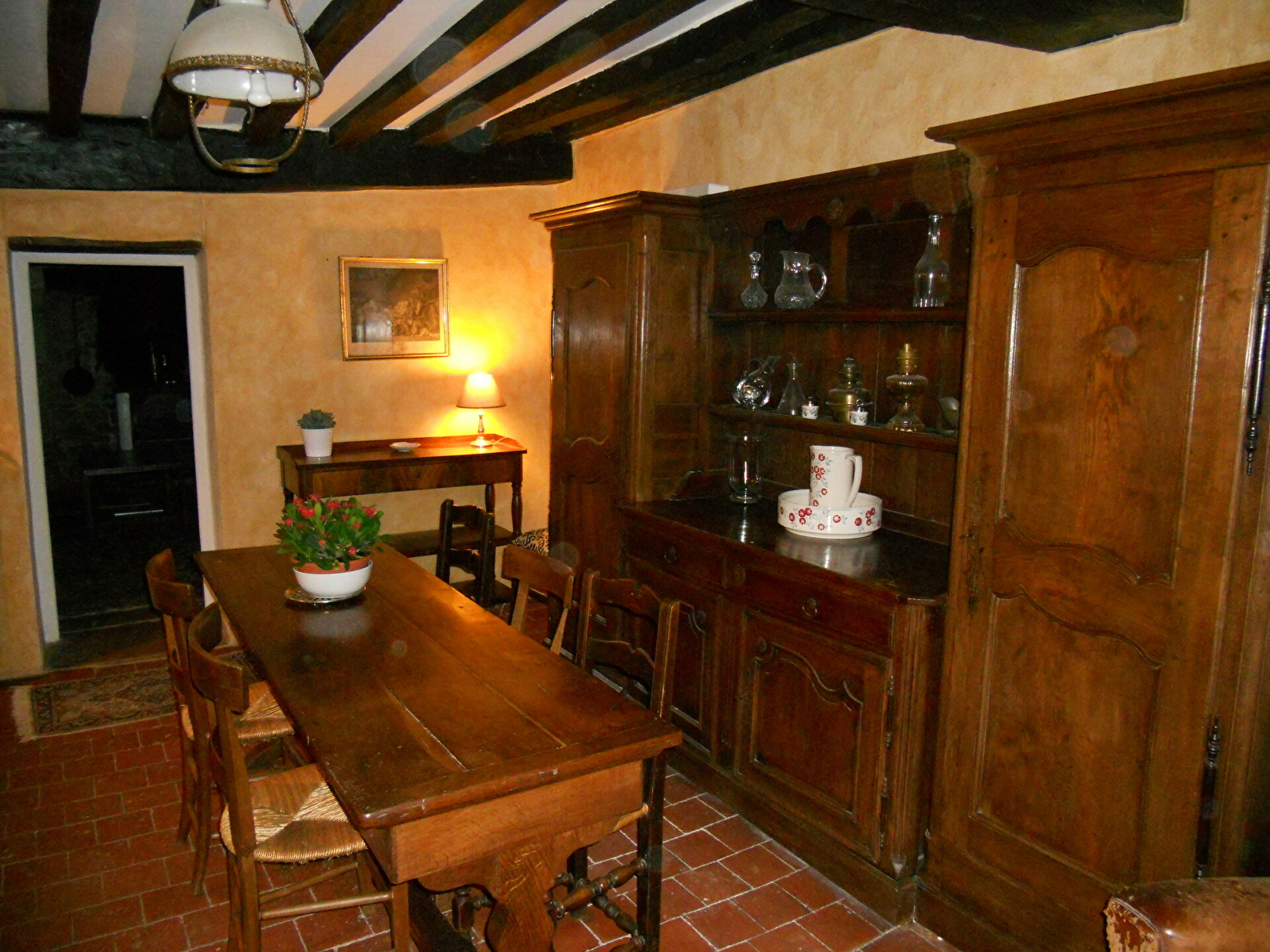 Comprenant : une entrée salle à manger, une cuisine indépendante entièrement équipée, WC séparés. Grand salon donnant sur le jardin avec cheminée et poutres ; canapés et chauffeuses (canapé lit - 1 pers, 2 pers ou double).