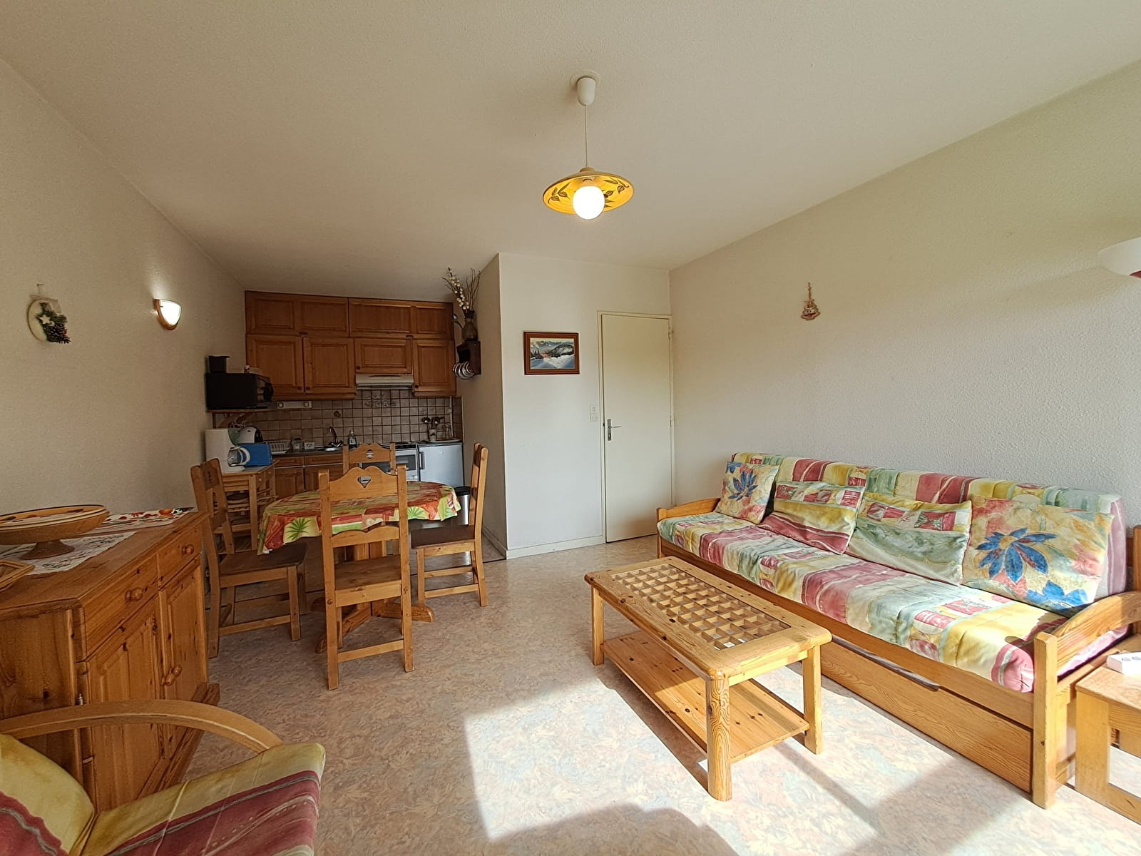 Situé dans la résidence "Le Plein Soleil", cet appartement de 43m² au 2ème étage est composé d’une pièce principale avec coin cuisine/repas et canapé lit gigogne. Une chambre indépendante avec lit de 140cm. Salle d’eau et WC indépendant. Un accès extérieur sur balcon complète le tout. Place de stationnement privée dans le parking souterrain. Résidence avec piscine intérieure.