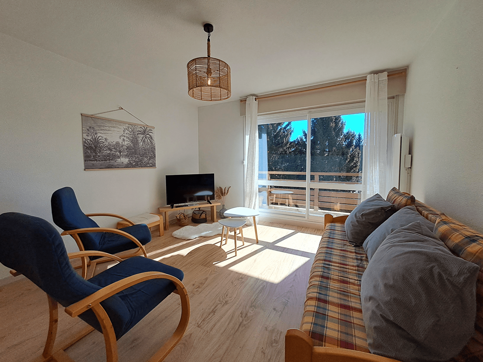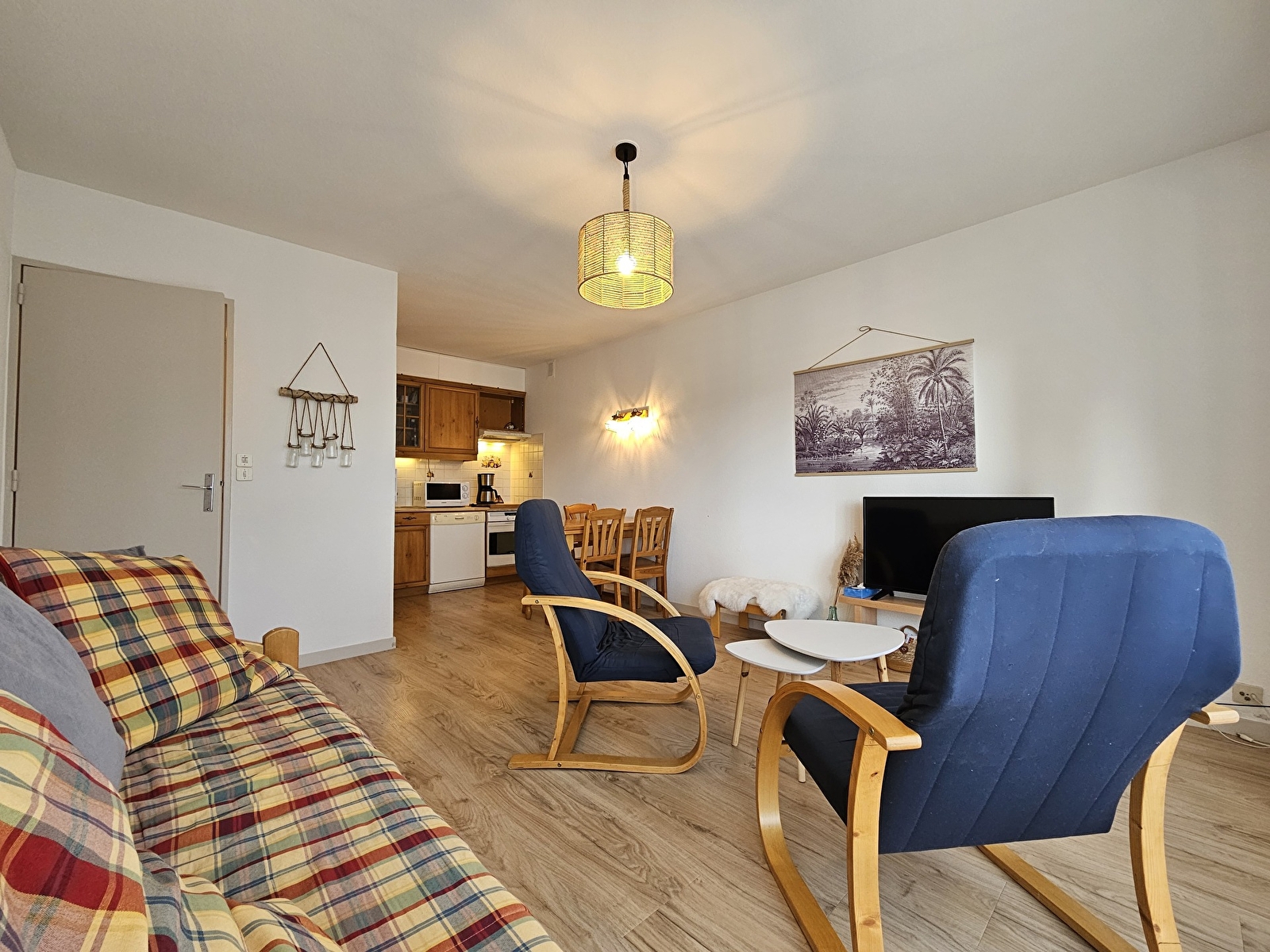 Situé dans la résidence "Le Plein Soleil", cet appartement de 41m² au 2ème étage est composé d’une pièce principale avec coin cuisine/repas et canapé lit gigogne. Une chambre indépendante avec lit de 140cm. Salle d’eau et WC indépendant. Un accès extérieur sur balcon complète le tout. Place de stationnement privée dans le parking souterrain. Résidence avec piscine intérieure.