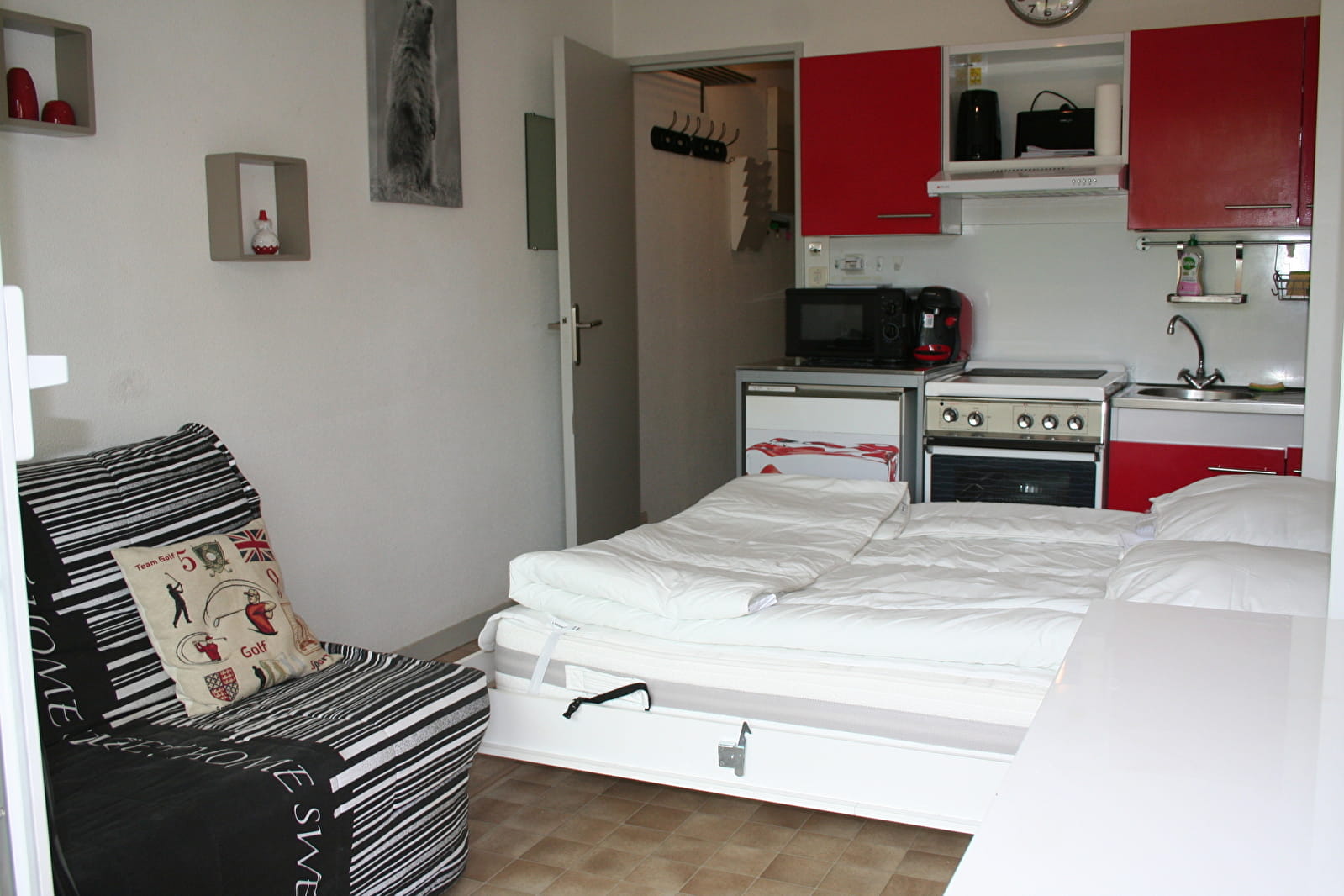 Situé dans la résidence "Le plein Soleil", ce studio de 18m² en rez de chaussée" est composé d’une pièce principale avec coin kitchenette/repas, canapé lit bz , lit mural en 140cm, avez sur terrasse extérieure commune. Stationnement possible sur le parking attenant à la résidence.