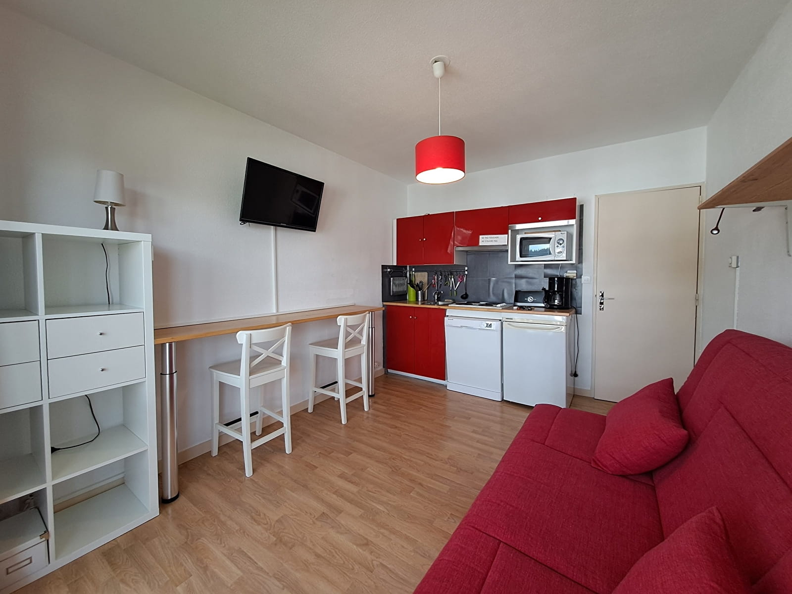 Situé dans la résidence "Le Plein Soleil", cet appartement de 18m² au 3ème étage est composé d’une pièce principale avec coin cuisine/repas et canapé lit bed express de 140cm. Salle d’eau et WC. Un accès extérieur sur balcon complète le tout. Place de stationnement privée dans le parking souterrain. Résidence avec piscine intérieure.