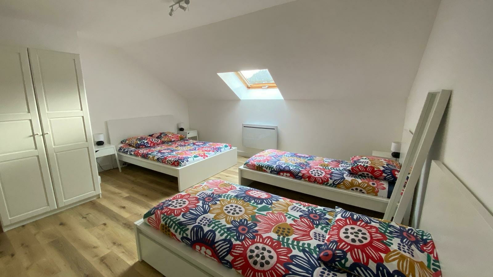 Il dispose de 3 chambres : 2 chambres avec un lit double (140X190) et 1 chambre avec 1 lit double (140X200) et 2 lits simples (90X200).