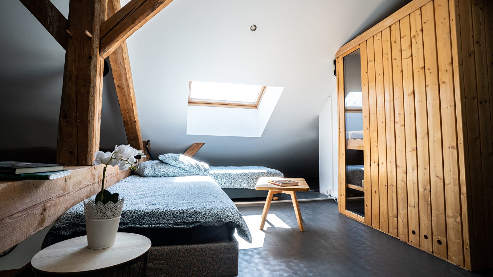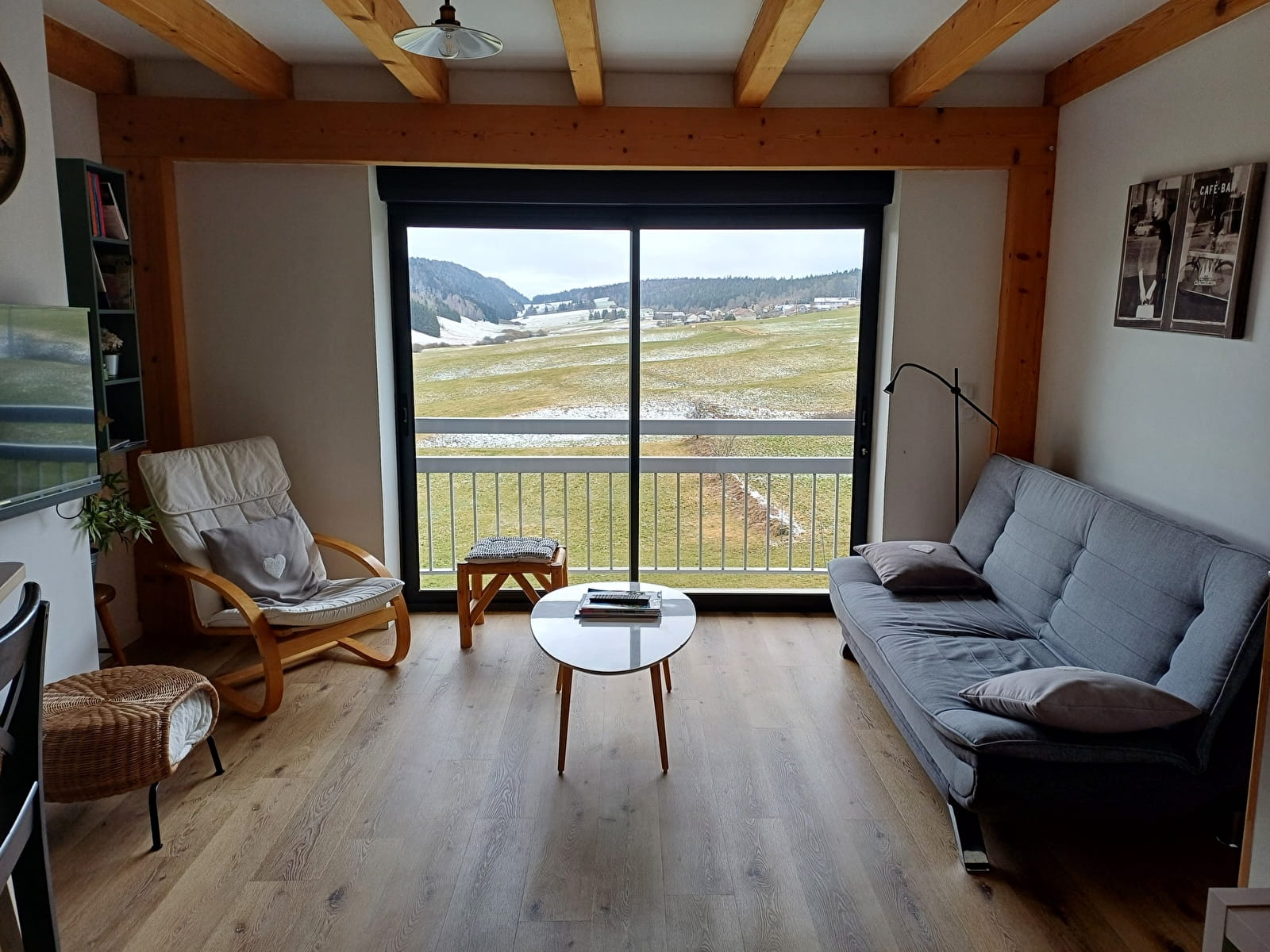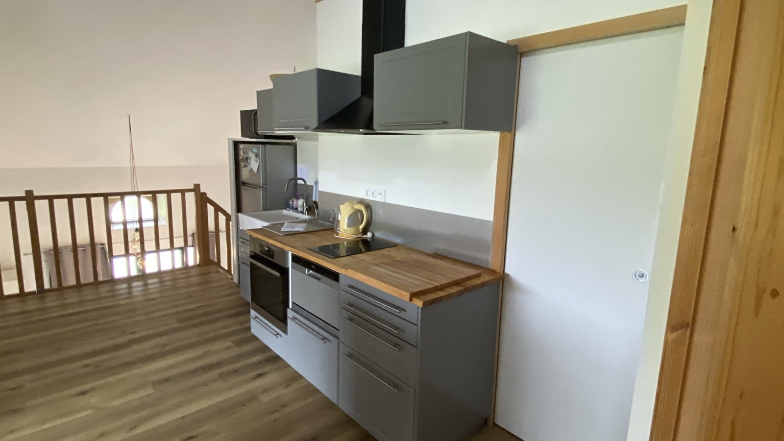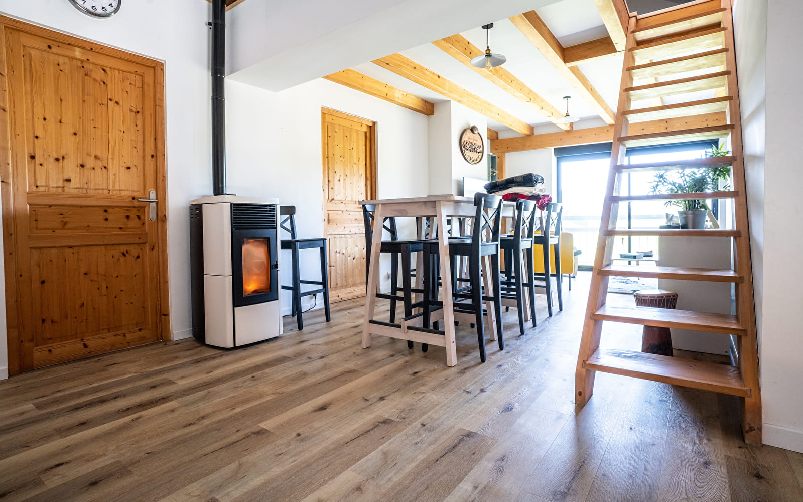 Le logement est neuf et moderne, entièrement meublé. Il se compose d'un grand hall d'entrée, d'une cuisine toute équipée ouverte sur un séjour salon, de 3 grandes chambres, d'une salle de bain et d'un espace détente sur la mezzanine avec un sauna. Le logement est équipé d'un poêle à pellets.