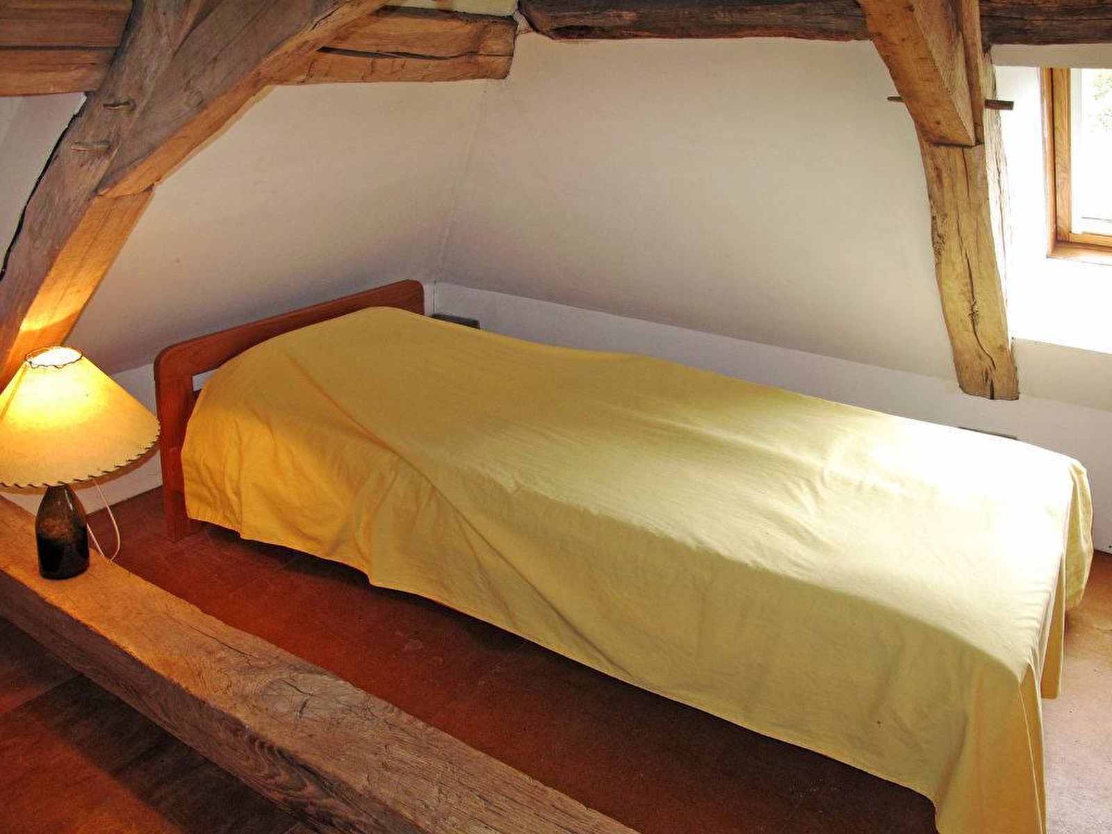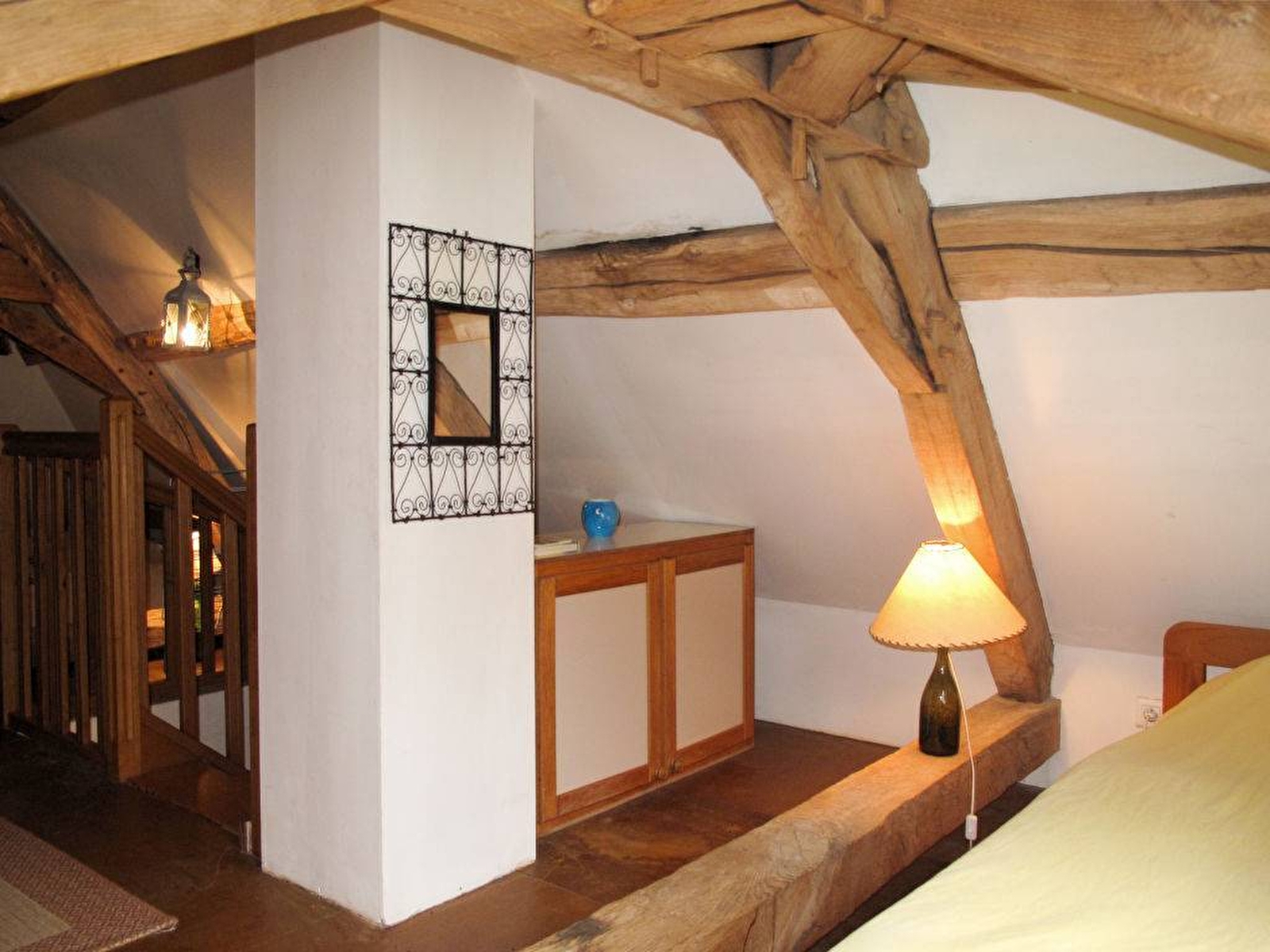À l'étage supérieur: 1 chambre avec 1 grand-lit (longueur 200 cm). 1 chambre avec 2 lits. Douche/WC. 2ème étage: 1 chambre, mansardée, ouverte avec 2 lits.