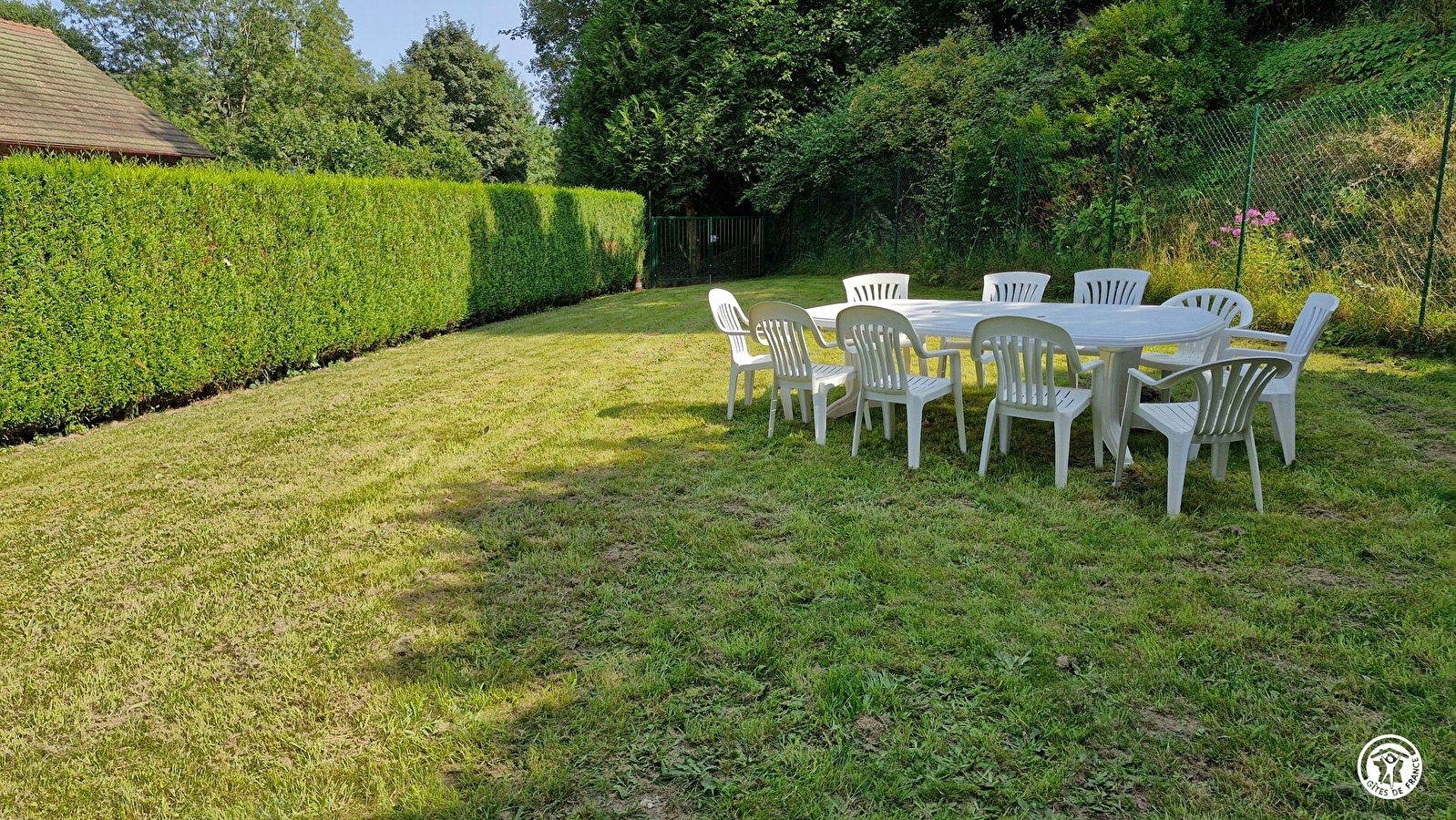 Maison individuelle avec jardin partiellement clos sans vis à vis pour 10 personnes. Au RDC : salon indépendant avec 2 canapés (dont un convertible pour 2 personnes) et un fauteuil, une télévision et box internet; une cuisine où prendre ses repas; 1 wc indépendant. Au 1er étage : 1 wc indépendant, une salle de bain comprenant une baignoire + une douche, lave-linge et sèche-linge; 1 chambre avec 1 lit 160x200; 1 chambre avec 1 lit 160x200 et bureau et sa salle d'eau privative (douche). Au 2ème étage, très grande chambre composée de 4 lits simple : 2 lits 90x190 et 2 lits 115x190 + un espace jeux pour les enfants.