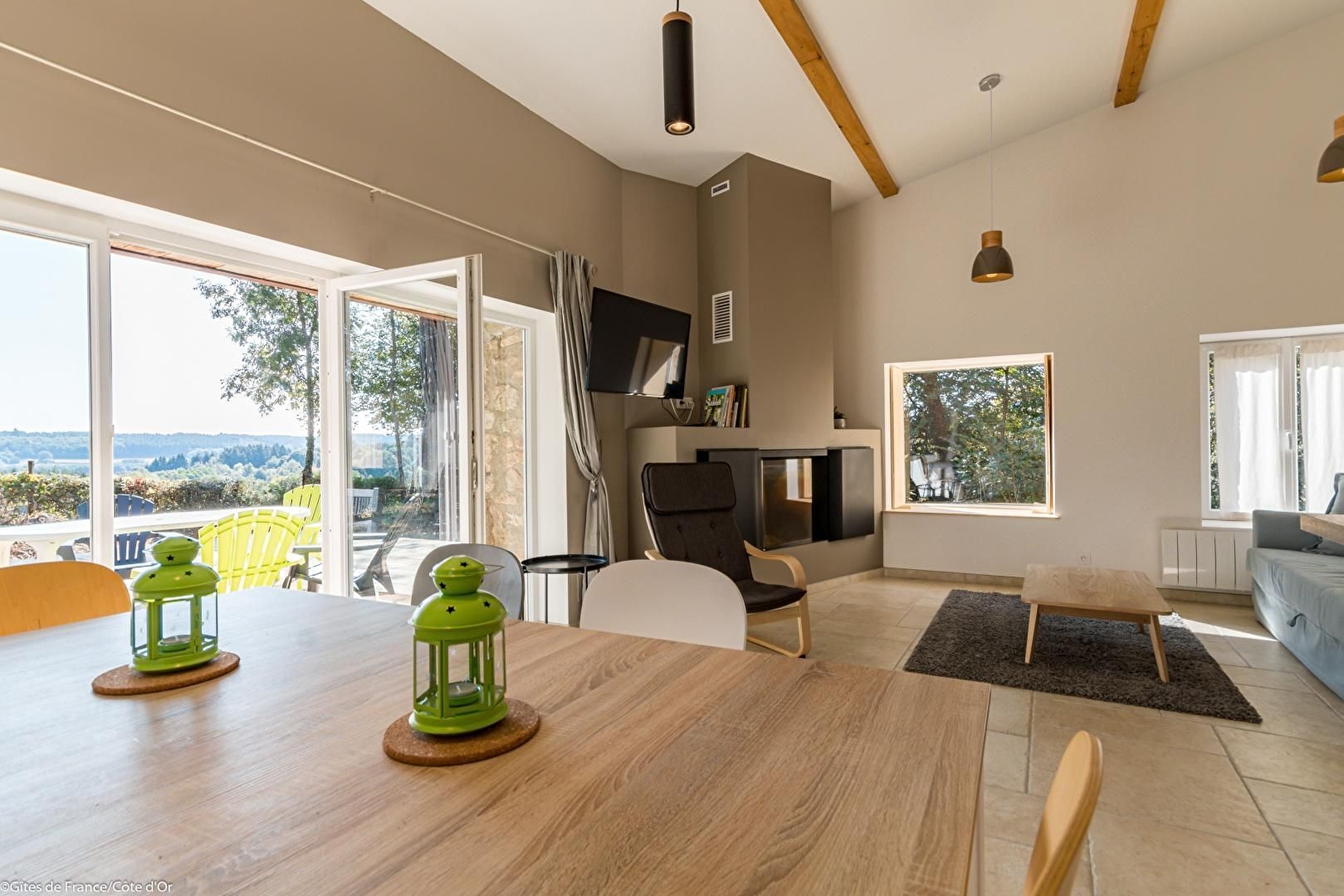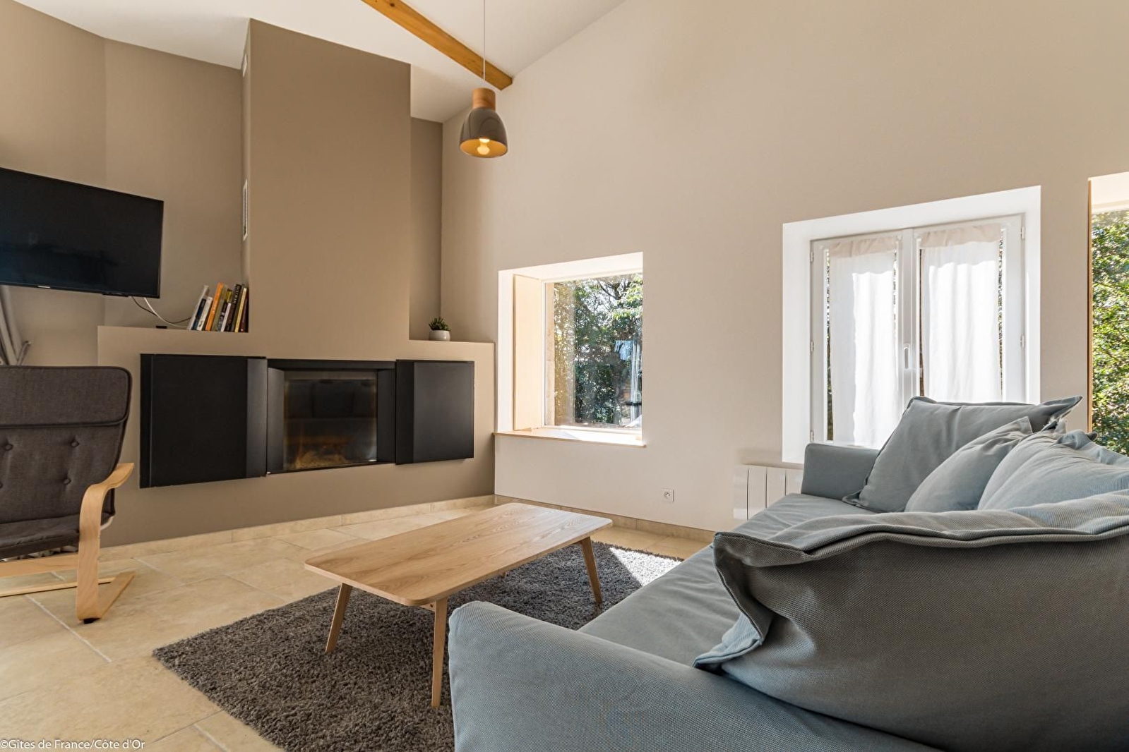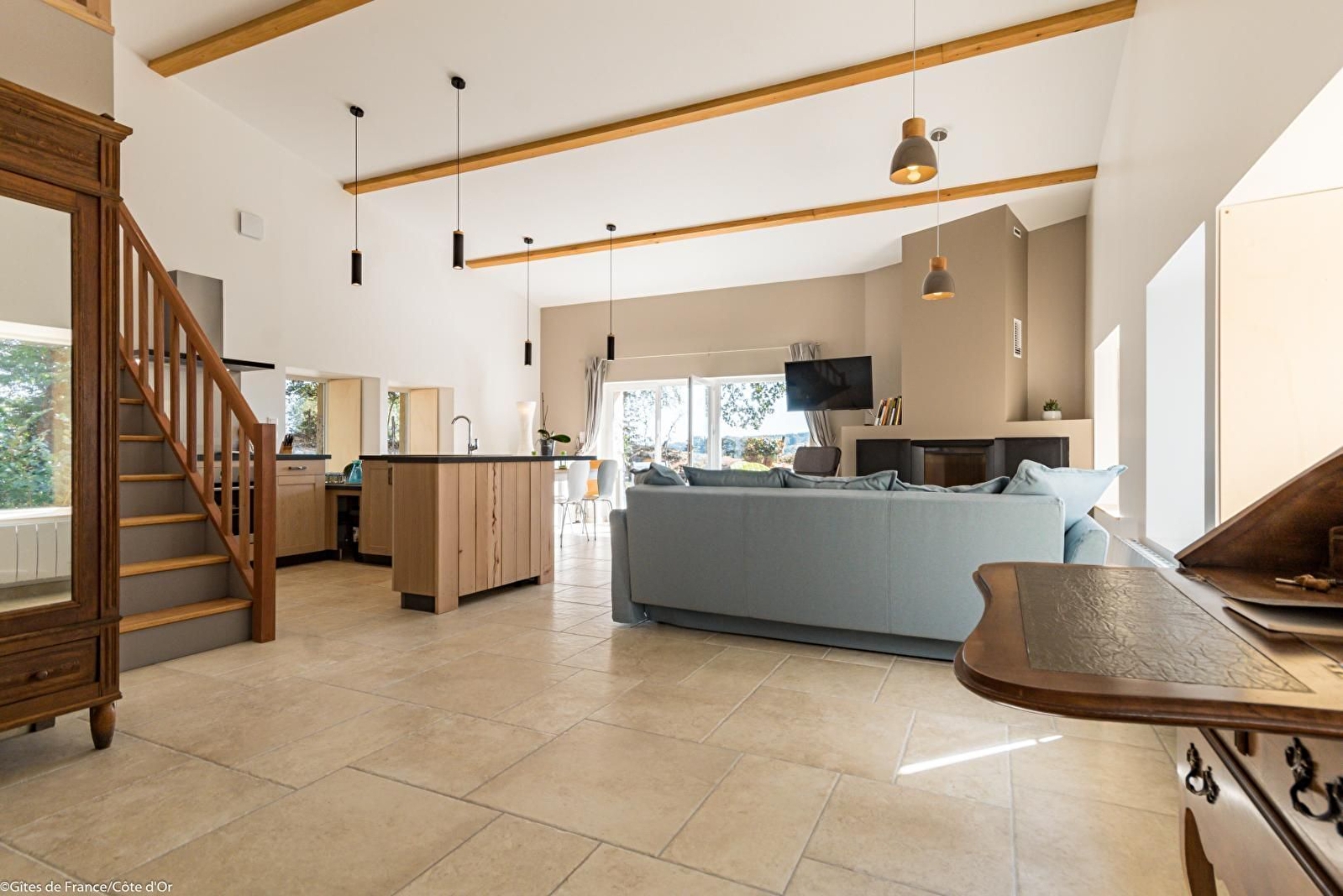 Belle vue sur le jardin des 4 coins de la maison, grâce à ses nombreuses ouvertures sur l'extérieur.