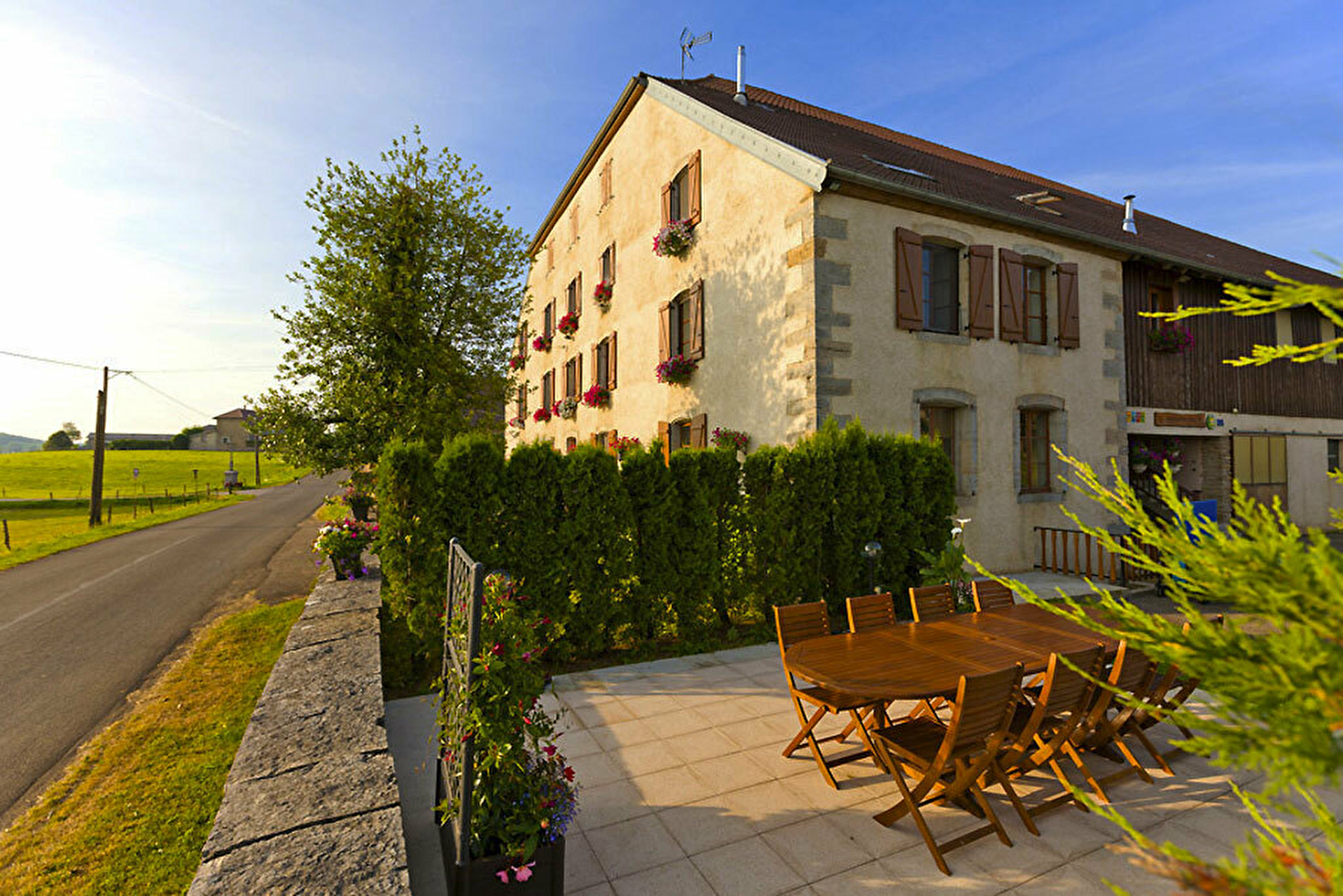 Idéalement situé au coeur du Jura, le gite du P'TIT BONHEUR est en pleine nature. A 10kms de la capitale des vins, Arbois et à 6 kms de la ville thermale de Salins Les Bains. Venez vous ressourcer loin du quotidien dans un cadre idyllique et verdoyant. Ancienne ferme Jurassienne, rénovée, notre gite pour 15 personnes est sur 3 niveaux. Une grande pièce à vivre se trouve au rez de chaussée, 6 chambres avec chacune leurs salles d 'eau et WC privatifs sont aménagées au premier et deuxième étage. La grande pièce à vivre, au rez-de-chaussée, est équipée pour cuisiner, se restaurer, pour passer de bons moments entre amis ou en famille. L'espace détente est à proximité avec son spa jacuzzi professionnel en supplément. Il vous suffit de traverser la cour pour accéder à la pergola équipée d'une grande table pour 15 personnes. Notre terrain de pétanque équipé de led pour vous éclater. Possibilité de visiter l'exploitation laitière pour la fabrication de comté de notre fils. Une grande remise est à votre disposition pour vos vélos et motos.