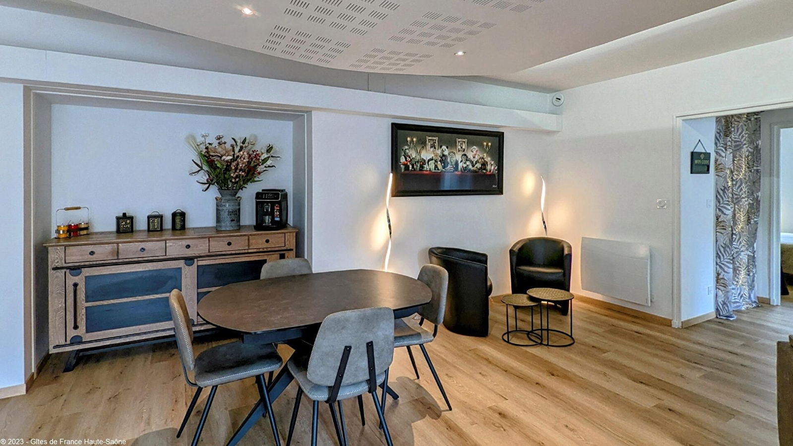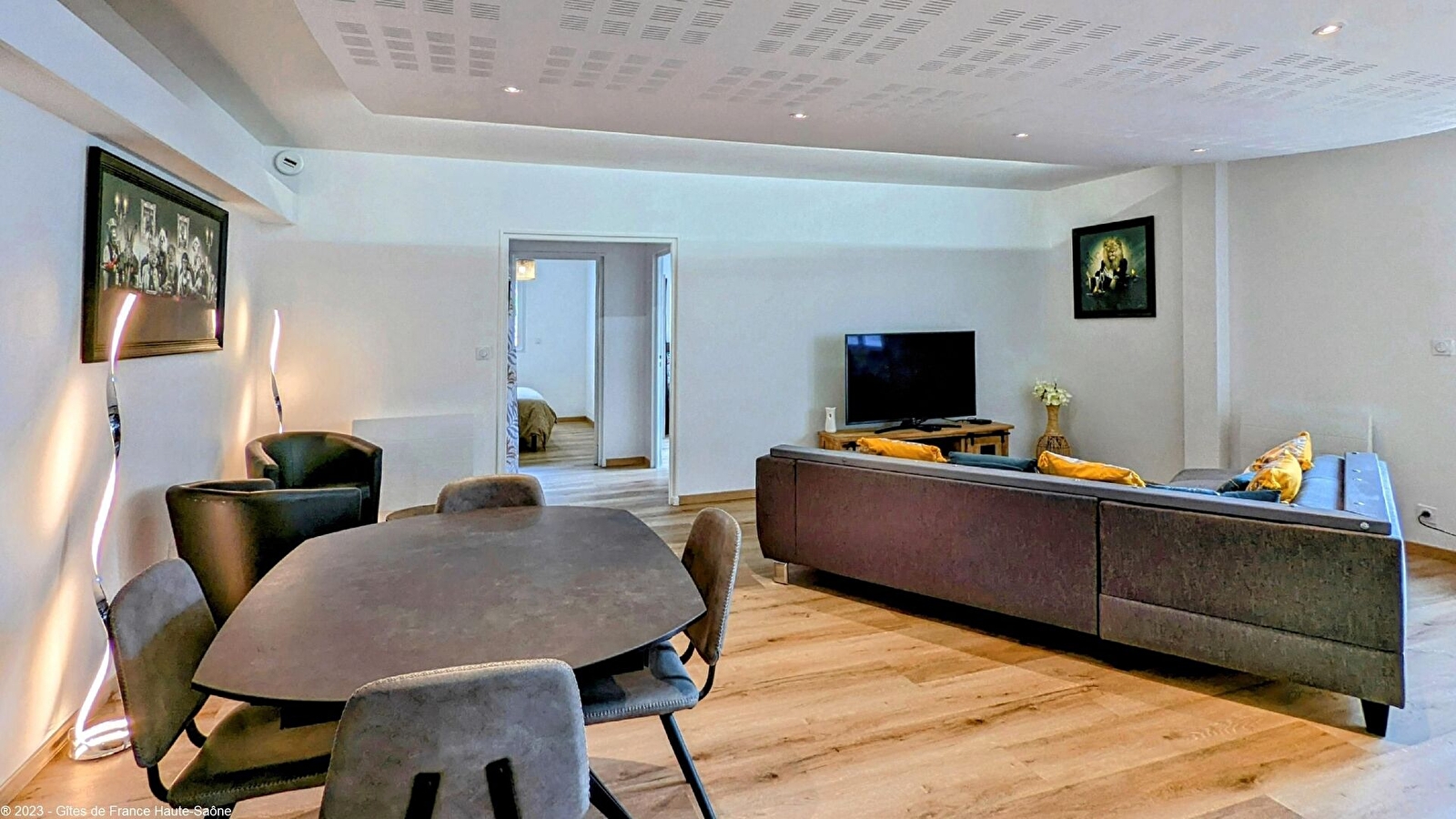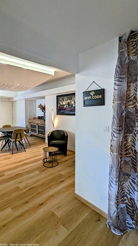 A quelques pas du centre historique de Vesoul, bel appartement spacieux et totalement rénové, de plain pied, situé au rez-de-chaussée d'un petit immeuble : Cuisine équipée ouverte sur salle à manger/ salon, avec TV écran plat, wifi. 2 chambres avec 1 lit de 160 cm chacune, dressing, salle d'eau, WC indépendant. Parking privatif et sécurisé (digicode). Lit bébé et chaise haute à disposition sur demande.