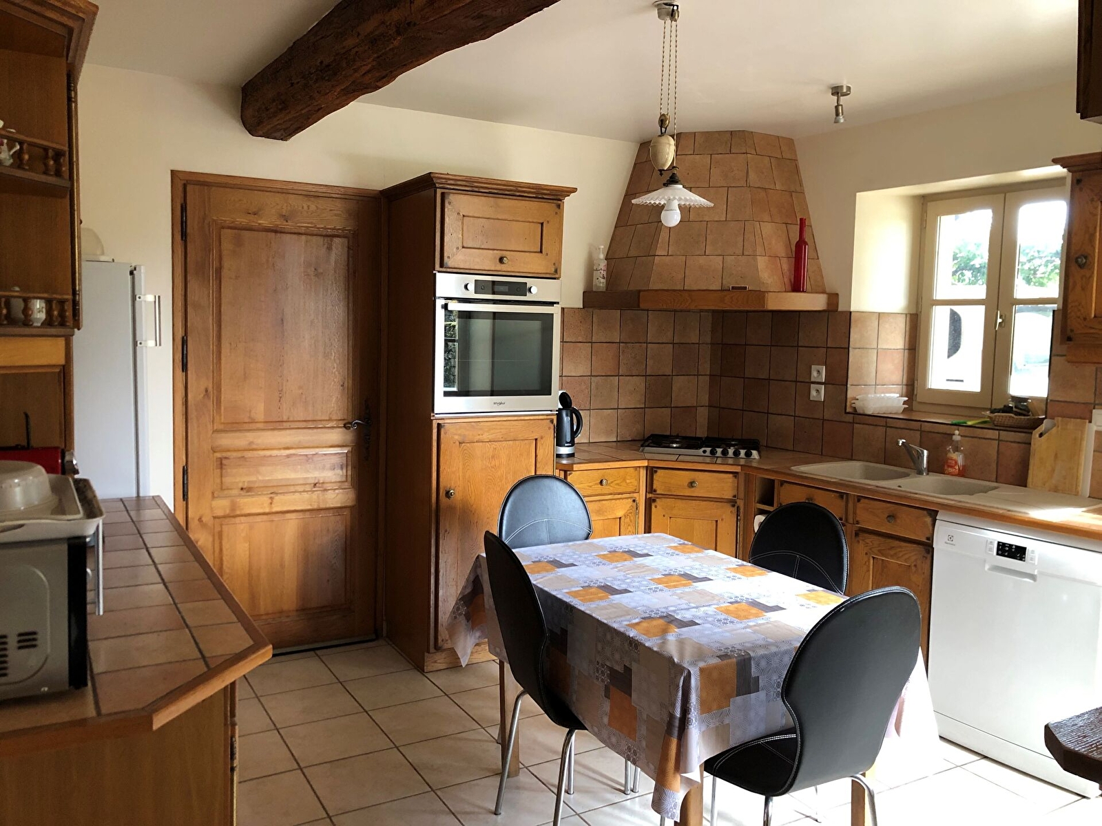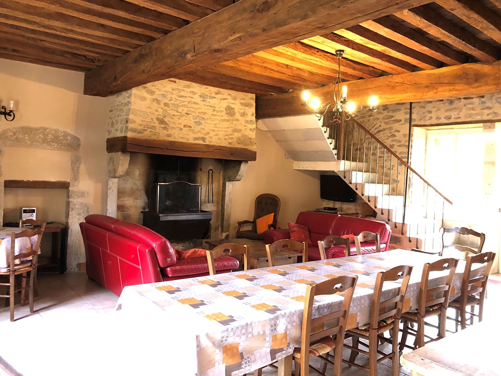 Rez-de-chaussée: Cuisine, Salle à manger/salon avec poêle.