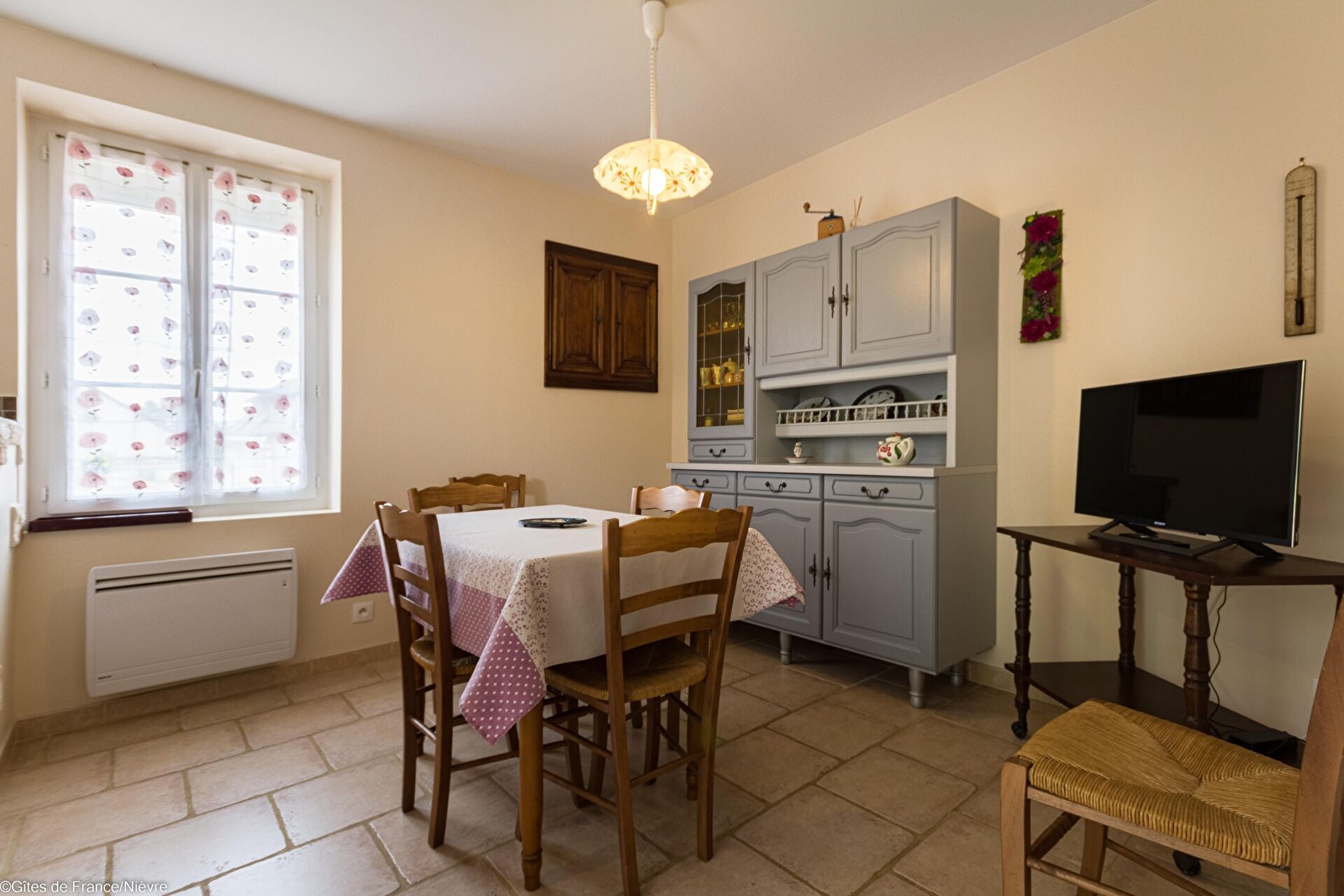 Gîte situé au coeur d'un petit village. Séjour avec coin cuisine, salon (1 clic-clac 2 personnes) avec télé et lecteur dvd, une chambre (1 lit 140x190), salle d'eau (douche) et WC. Internet par la fibre. Jardin privatif d'environ 150 m2. Draps et linge de toilette fournis, charges comprises. Possibilité ménage en fin de séjour avec supplément. 2 vélos à disposition. 2 animaux maximum admis. Possibilité d'hébergement pour chevaux. A proximité la ville de la Charité-sur-Loire (ville du livre, festivals du mot, du blues) classée au patrimoine mondial de l'Unesco, les vignobles de Pouilly-sur-Loire et de Sancerre, la forêt des Bertranges.