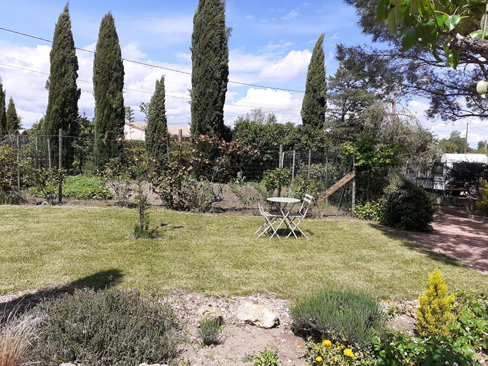 Composition : Maison individuelle. Wifi. Chauffage électrique + poêle à bois. Rdc : cuisine-séjour, salon (canapé conv. 2 p. 160x220cm en appoint), salle de bain (baignoire/Wc). 1er étage : 1 chambre (lit 2 p. 140x190cm + lit 1 p. 90x190cm). Jardin (7000m²) + double terrasse + terrain pétanque + local vélos + parking privés. Supermarché 7 km. Petits commerces 8 km.