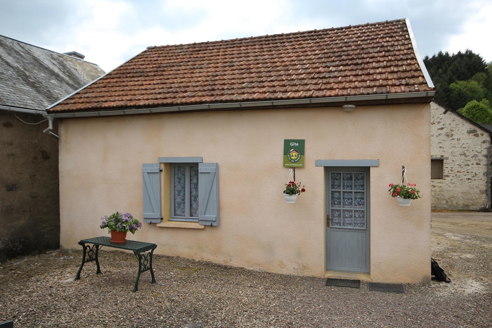 Composition : Maison individuelle voisinant l'habitation des propriétaires et l'autre gîte de la propriété (totale indépendance). Wifi (fibre). Chauffage électrique. Gîte de plain-pied en rdc : séjour-cuisine-salon (convertible 2 p. 140x190cm en appoint), 2 chambres (lit 2 p. 140x190cm / 2 lits 1 p. 90x190cm), salle d'eau (douche/Wc). Cour-terrasse close + parking privés. Petite épicerie 3 km. Commerces 7 km.