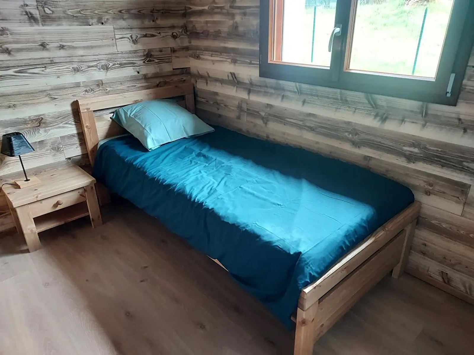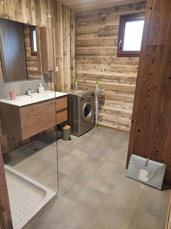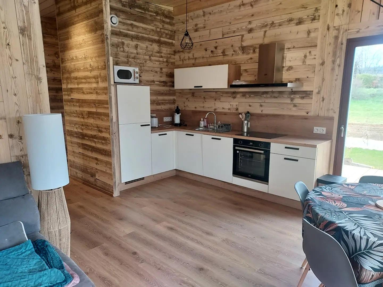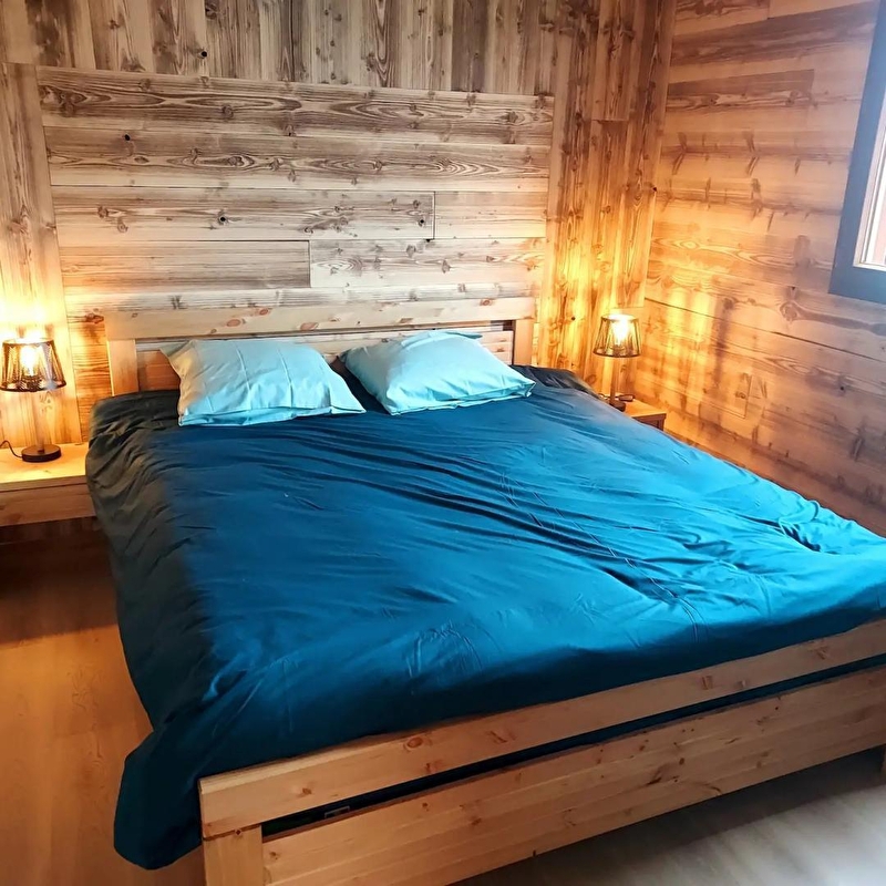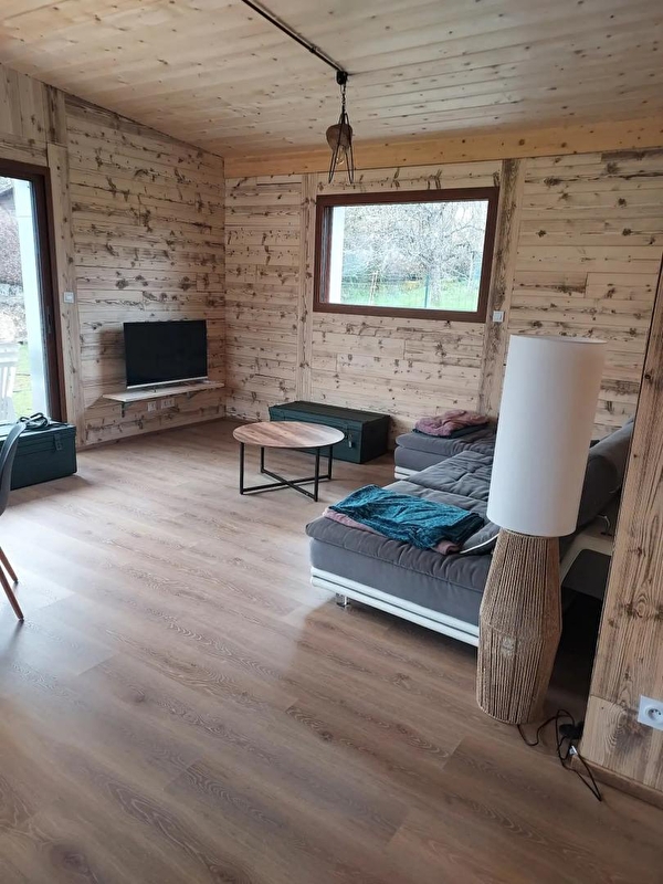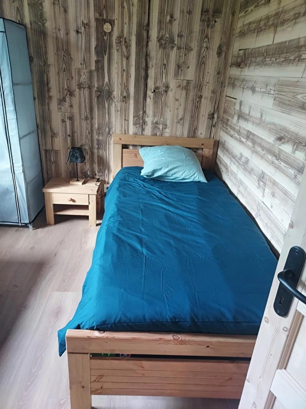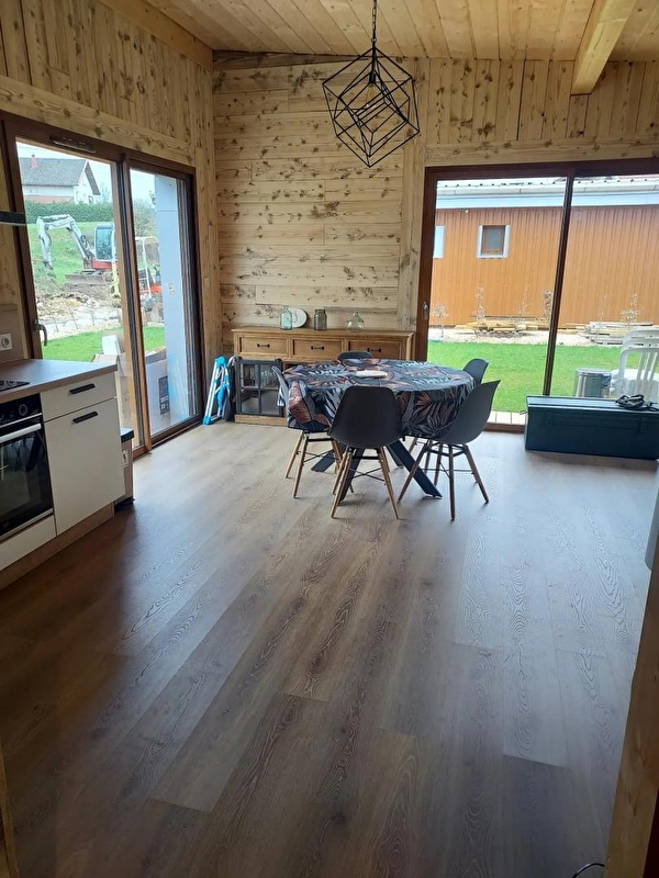 Cette maison neuve à ossature bois, de plain-pied, située à proximité du Pays des Lacs se compose d'une pièce de vie avec cuisine toute équipée, d'un coin salon avec TV, d'une chambre avec un lit double (160*200), d'une chambre avec 2 lits simples (90*200), d'un WC indépendant et d'une salle d'eau avec douche. Côté extérieur, vous pourrez profiter des beaux jours sur la terrasse, équipée avec salon de jardin, transats et barbecue. Note : Au moment du départ, le chalet doit être propre et rangé, le lave vaisselle doit être vidé, la vaisselle rangée, le gite doit impérativement être balayé avant le départ et le nettoyage du coin cuisine est impératif avec ou sans forfait ménage. Une caution de 30 euros pour le nettoyage du coin cuisine vous sera demandée. ATTENTION : les prises de courant ne sont pas aux normes pour la charge des véhicules électriques. Il est formellement interdit de s'en servir pour une telle utilisation. Risque de court circuit ou d'incendie. Une borne de recharge rapide est disponible à 200 m (nous contacter) Parking privé sur place et volets dans les chambres.