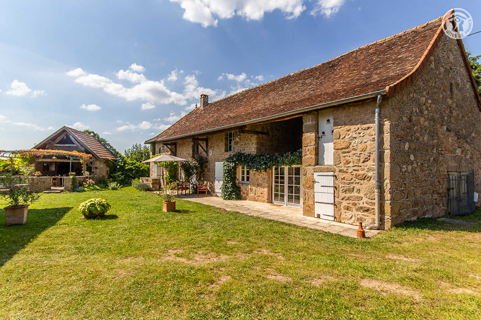 Louis vous accueille au sein de la ferme de son enfance, authentique longère bourguignonne de caractère du 18ème siècle, restaurée dans les règles de l'art. En lisière de prairies (avec les moutons charolais comme paisibles voisins !), au cœur d'un charmant petit hameau typique & calme niché sur un plateau de bocage vallonné au pied de la célèbre Butte de Suin, culminant à 600m d'altitude sur la ligne de partage des eaux entre l'océan Atlantique & la Méditerranée. Blottie sur le site d'une ancienne cité gauloise & d'une voie romaine majeure, sur un site naturel protégé pour son remarquable écosystème végétal et animal (notamment aquatique), cette iconique sentinelle panoramique de Saône-et-Loire offre une vue à 360° littéralement exceptionnelle, jusqu'au Mont-Blanc par temps clair (un dicton local affirme qu'on y aperçoit 52 clochers !). Vous profitez d'un ravissant jardin clos de 500m², soigné & très fleuri, doté d'une double terrasse (une en partie abritée, à l'endroit de l'ancien four à pain) et d'une table de ping-pong (dans ancienne grange). Superbe vue dégagée sur le charollais. Magnifique panorama & paysages. Spacieux gîte de grand confort. Chaleureux cachet campagnard marié à une restauration patrimoniale très soignée (poutres, charpente, murs en pierres, tommettes, manteaux de cheminée, portes moulurées d'origine…). Apaisante ambiance douillette d'une « maison de famille ». Beaucoup de charme et caractère. Cosy & très cocooning.
