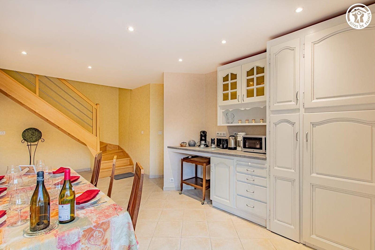 Mireille & Jean-Marc vous ouvrent les portes d'une ravissante authentique demeure bourguignonne traditionnelle de caractère du XIXe soigneusement réhabilitée sise à deux pas des vignes, pétrie d'histoire locale (ancien restaurant, épicerie, mercerie, bazar, boulangerie & café…), adresse emblématique du village (ayant accueilli le tout premier téléphone du bourg !). Blotti en pleine campagne viticole vallonnée au cœur des magnifiques vignobles du haut Maçonnais, entre viticulture, agriculture & pleine nature, sur un espace protégé en ZNIEFF (pour ses richesses faunistiques & floristiques) mixant bucoliques coteaux de vignobles & prairies bocagères au creux des douces colline boisées du massif sud Bourgogne (espace sauvage en large partie protégé en "Zone Natura 2000", à parcourir à pied ou VTT, offrant d'exceptionnels belvédères panoramiques jusqu'au Mont-Blanc par temps clair !), le charmant village typique de Péronne profite d'un sublime écrin paysagé, dispose d'un supermarché & jouit d'un patrimoine notable (église romane classée du XIIe, divers châteaux & manoirs dont l'ancien pavillon de chasse d'Alphonse de Lamartine, illustre hôte des lieux…). Gîte de très bon confort. Spacieux & lumineux. Chaleureux cachet campagnard conjuguant esprit contemporain, élégante "rusticité" & dépaysante ambiance "vintage". Beaucoup de charme. Équipement complet de qualité. Intimiste cour close en gravier exposée au sud, véritable vaste terrasse, agrémentée d'un agréable espace détente "outdoor".