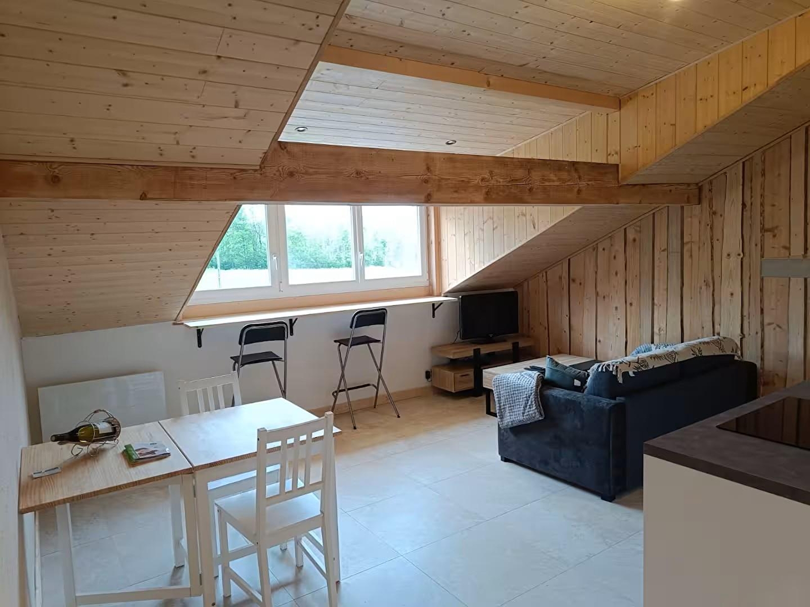 Ce charmant gîte pour 2 personnes est situé dans un havre de paix. Au premier étage de la maison des propriétaires, cet agréable appartement vous accueille dans un cadre calme et reposant, idéal pour un séjour en couple ou une escapade à deux. Il se compose d'une chambre confortable avec 2 lits 90*200 (jumelables), d'une pièce de vie avec coin cuisine équipé, salon avec TV et d'une salle d'eau moderne avec douche et WC. Côté extérieur, vous pourrez profiter d'une terrasse avec salon de jardin, transats et plancha. Pour votre plus grand confort les draps sont fournis. Idéalement situé, vous pourrez pratiquer de nombreux loisirs de pleine nature : randonnées, ski de fond, raquettes, partir à la découverte de la région des lacs (cascade du Hérisson, belvédère des 4 lacs...) ou encore découvrir et déguster les incontournables Morbier et Comté dans l'une des nombreuses fruitières du Haut-Jura. Vous apprécierez le calme des environs, parfait pour se ressourcer, tout en restant à proximité des commerces et des principaux sites touristiques de la région. Un lieu idéal pour se détendre et profiter d'un séjour paisible à la campagne