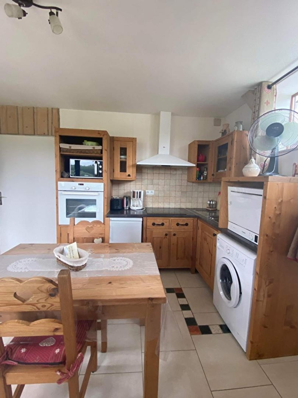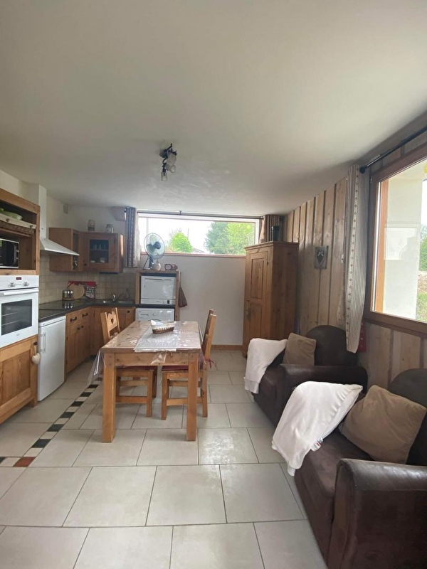 Idéalement situé a proximité des pistes de ski du Haut Jura ainsi que des lacs et cascades, charmant petit logement pour 2 personnes au rez de chaussée de la maison des propriétaires (abritant également un autre gîte pour 6 personnes). Hall d'entrée, cuisine entièrement équipée, coin salon avec TV écran plat, lecteur DVD et fauteuils, CH1: 1 lit 2 pl, salle d'eau et wc. Terrasse aménagée offrant une magnifique vue sur la nature environnante. Salon de jardin, parasol, barbecue et chaise longue à disposition. Produits de base (sel, poivre, huile, farine et sucre) produits d'entretiens, éponges et papier toilette fournis.
